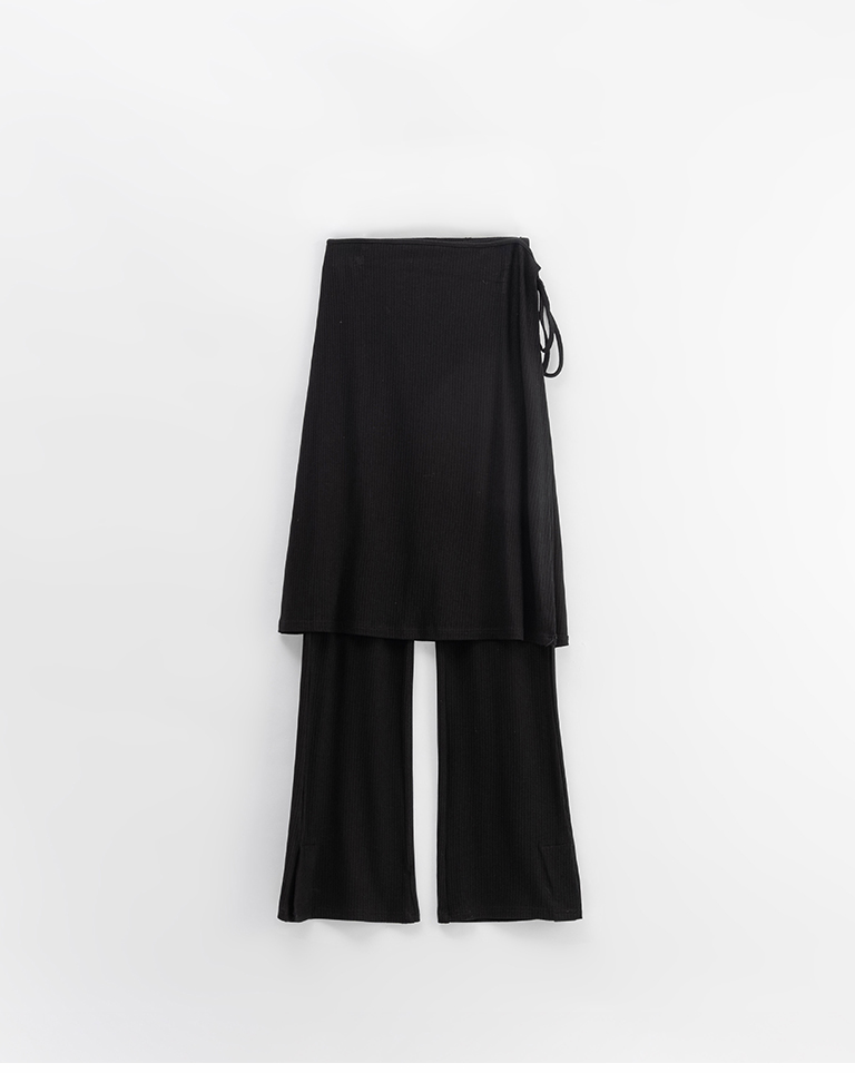 質感坑條兩件式彈性裙簾長褲-黑 S/M
