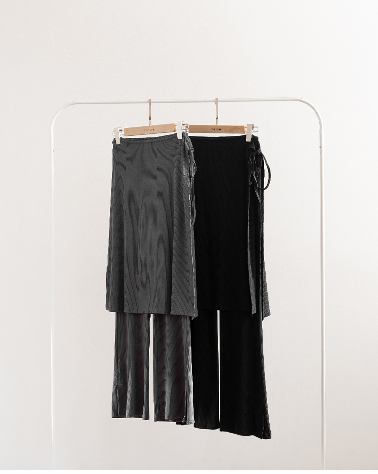 質感坑條兩件式彈性裙簾長褲