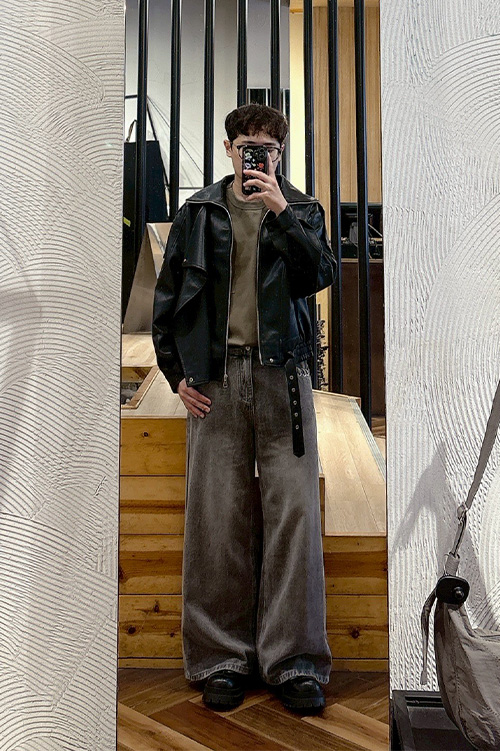 剪裁有型!個性線條錐形牛仔褲