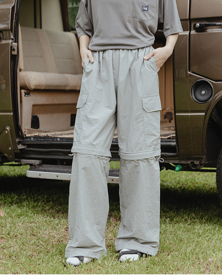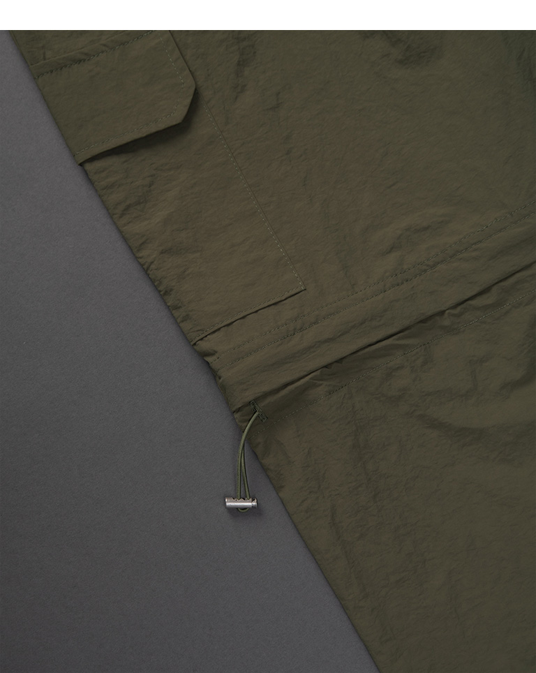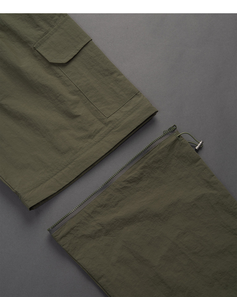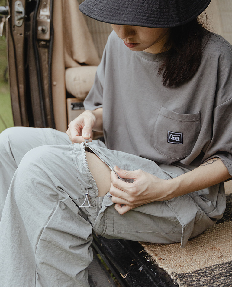 抽繩拉鍊兩穿設計工裝褲