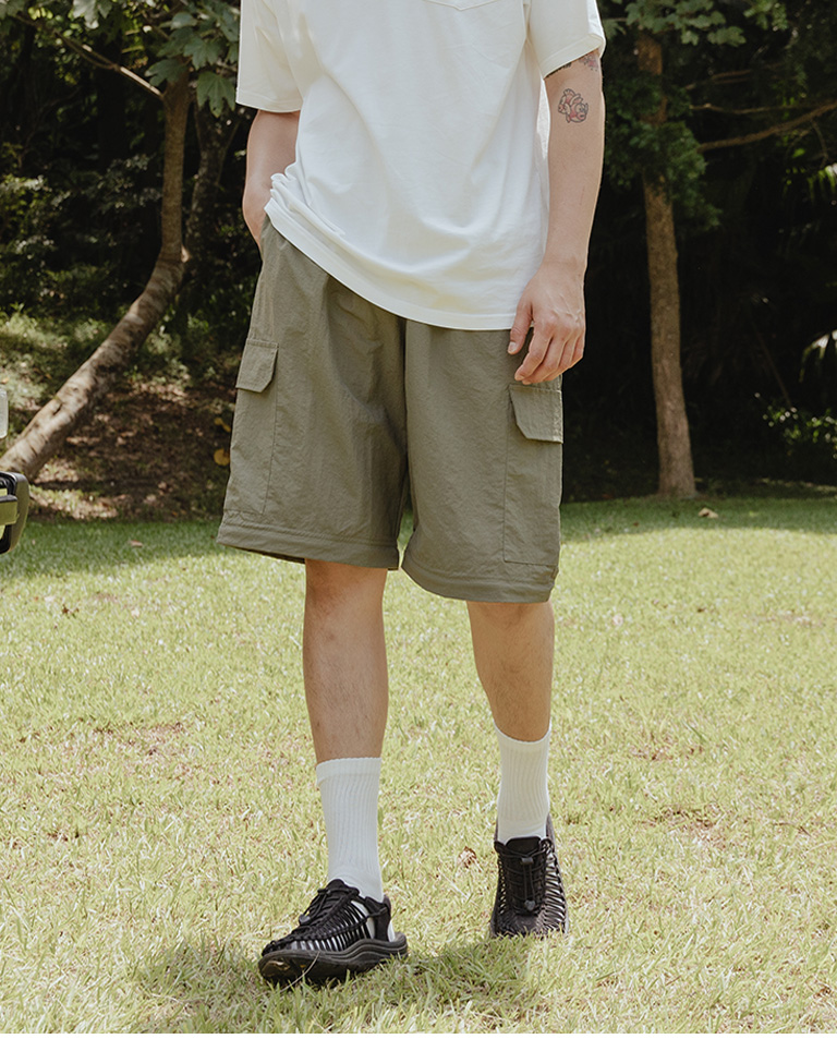 抽繩拉鍊兩穿設計工裝褲 兩色售 1/2