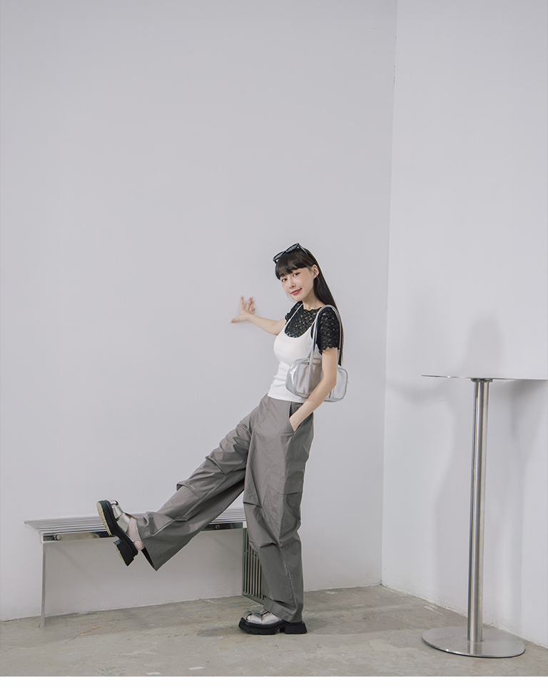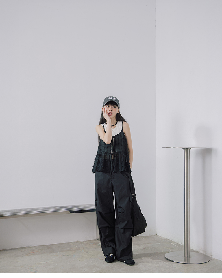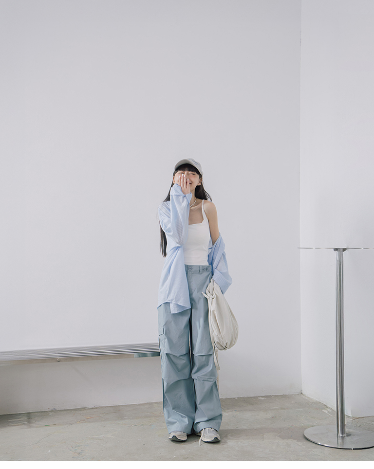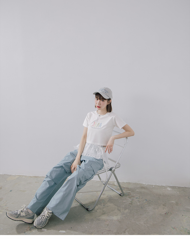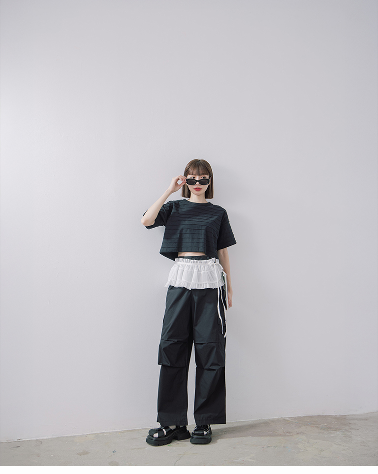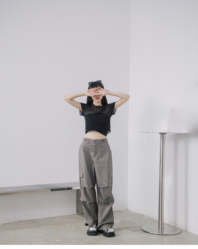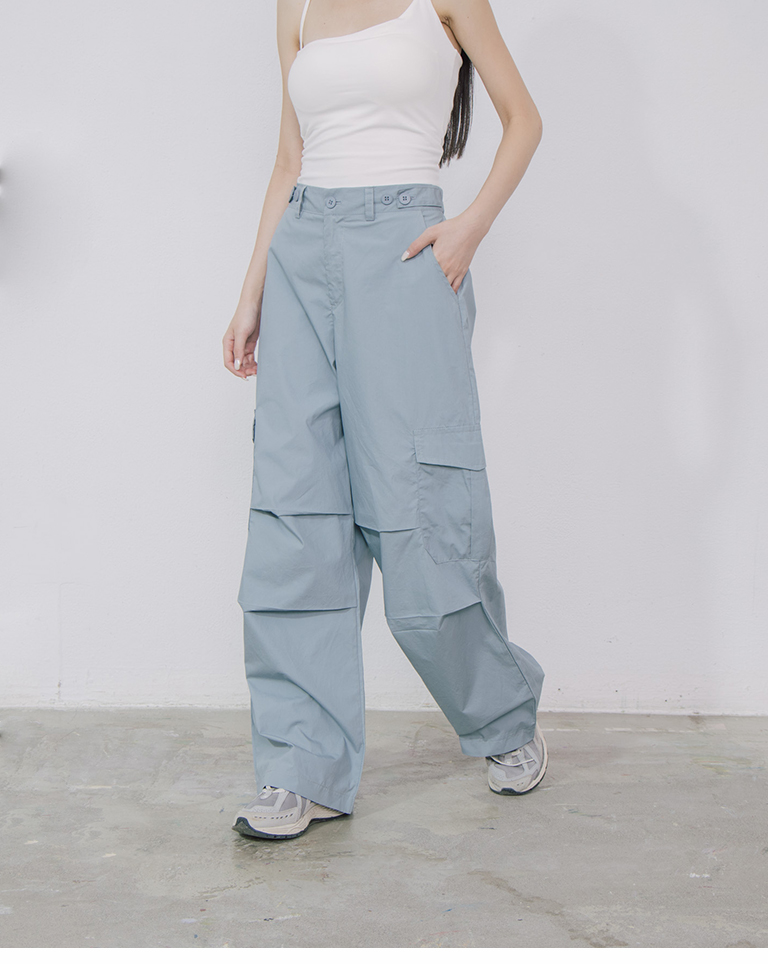 大口袋剪接打褶工裝長褲 三色售 S/M