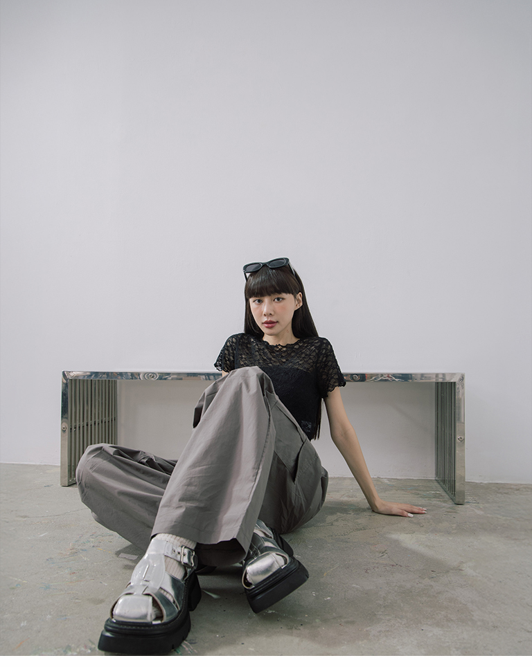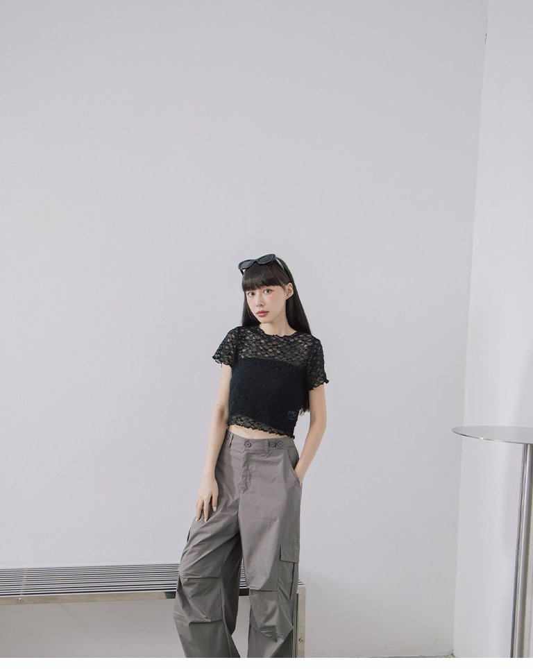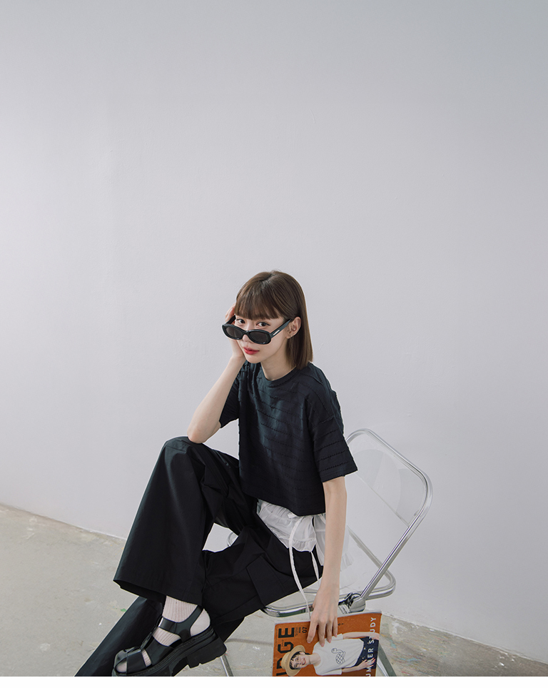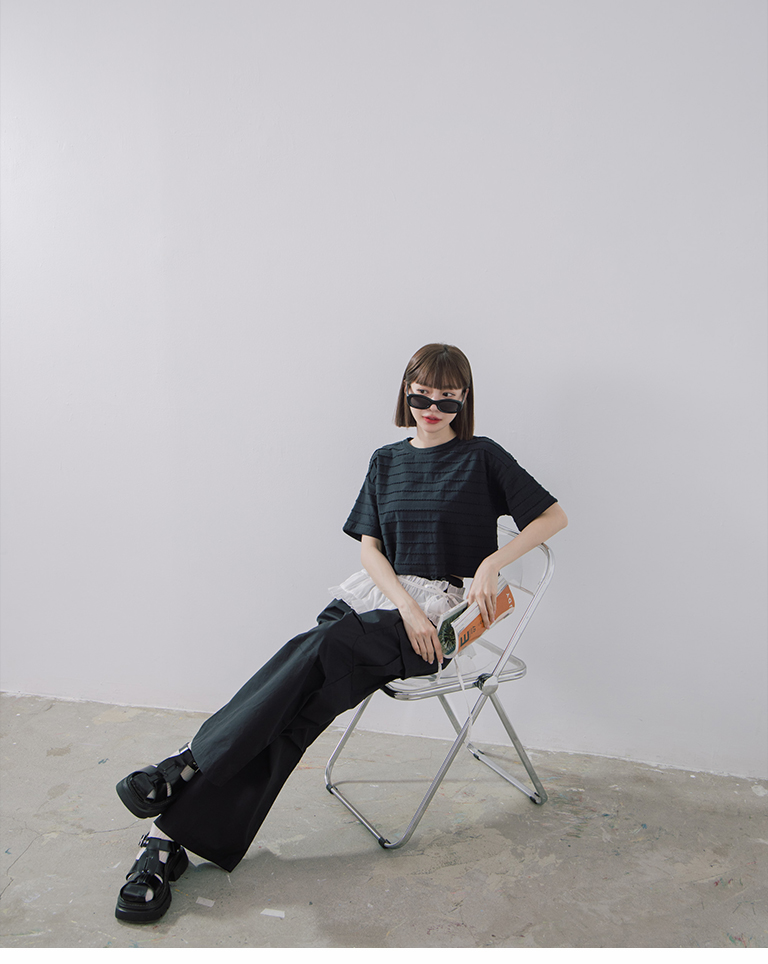 S~L身形實測!分尺寸皺皺木耳邊透膚高領長袖上衣