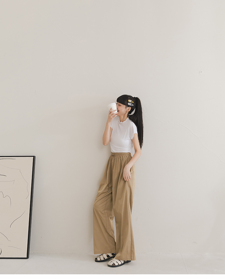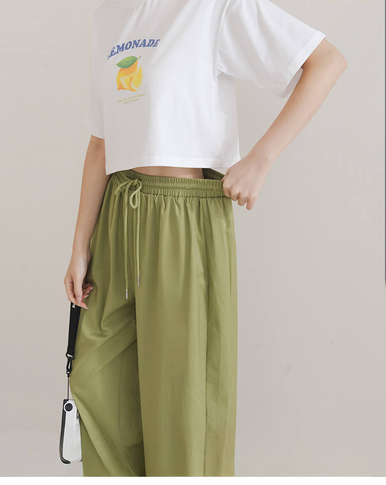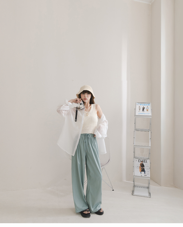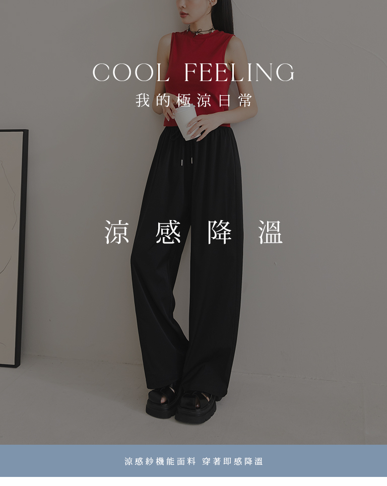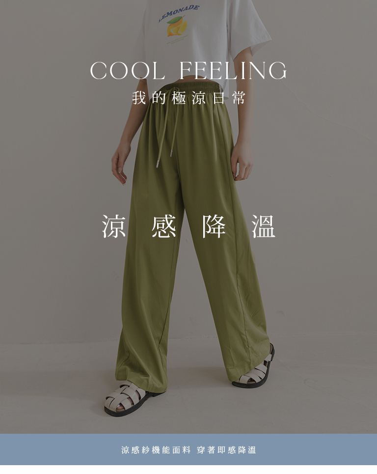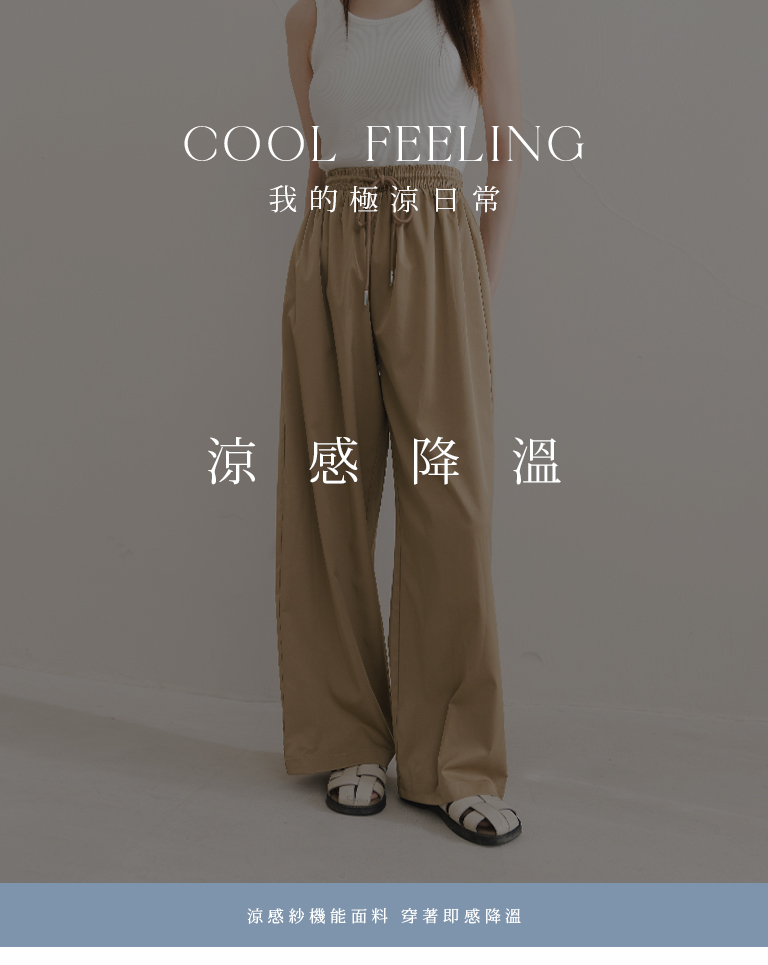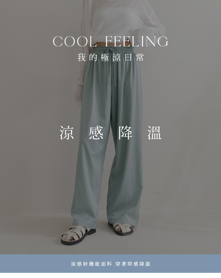 涼感鬆緊腰頭綁帶長褲 五色售 S/M