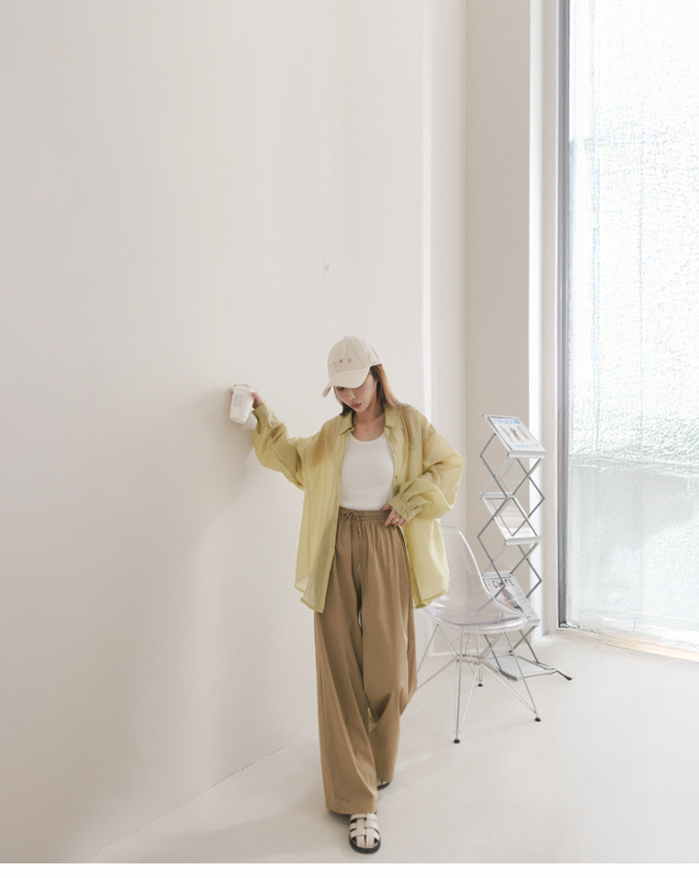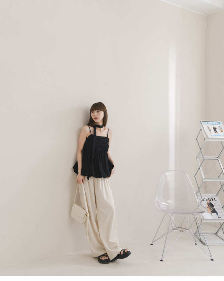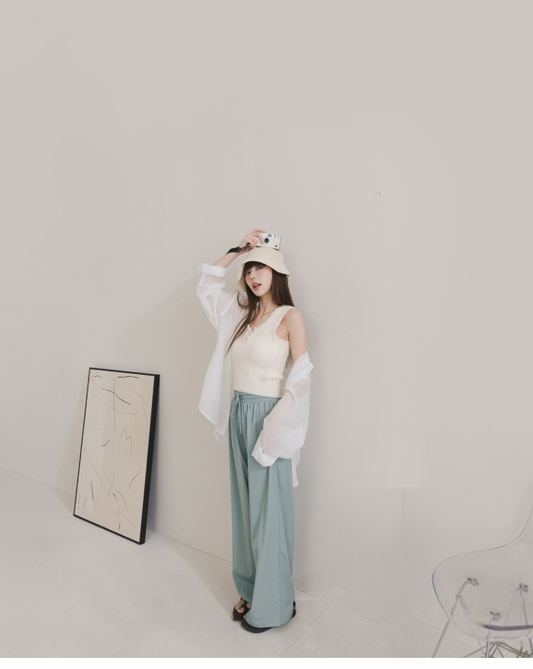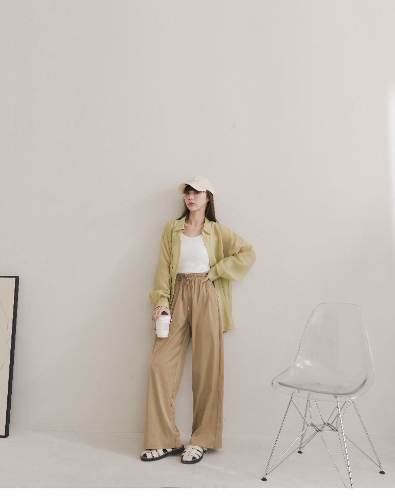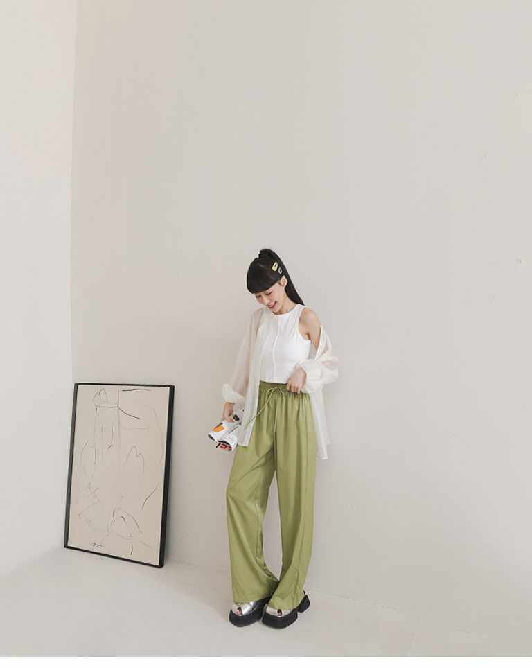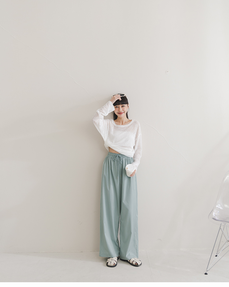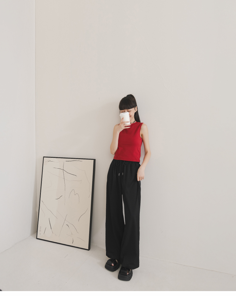 涼感鬆緊腰頭綁帶長褲 五色售 S/M