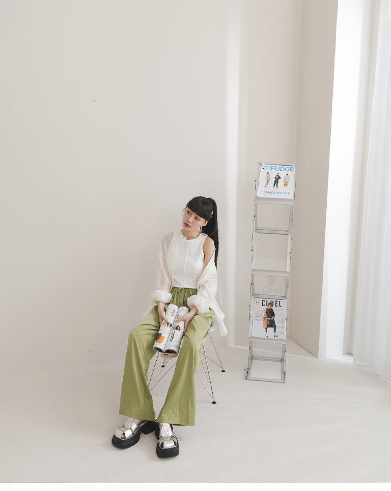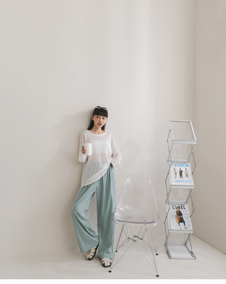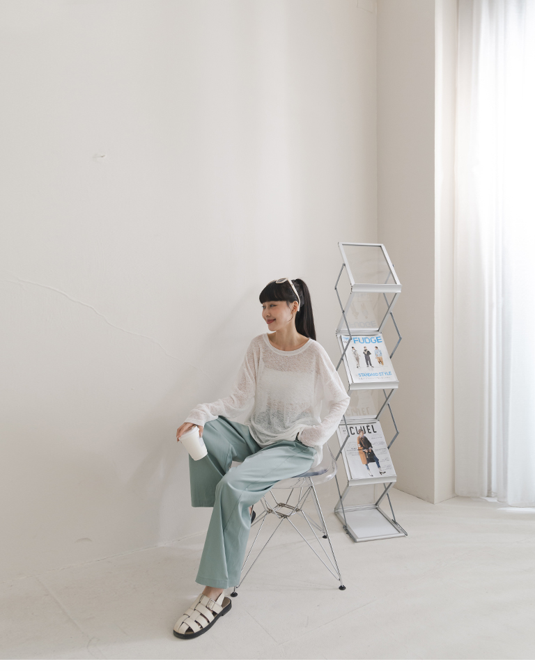 S~L身形實測!分尺寸皺皺木耳邊透膚高領長袖上衣