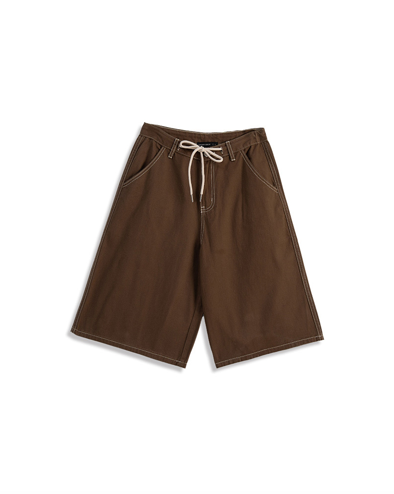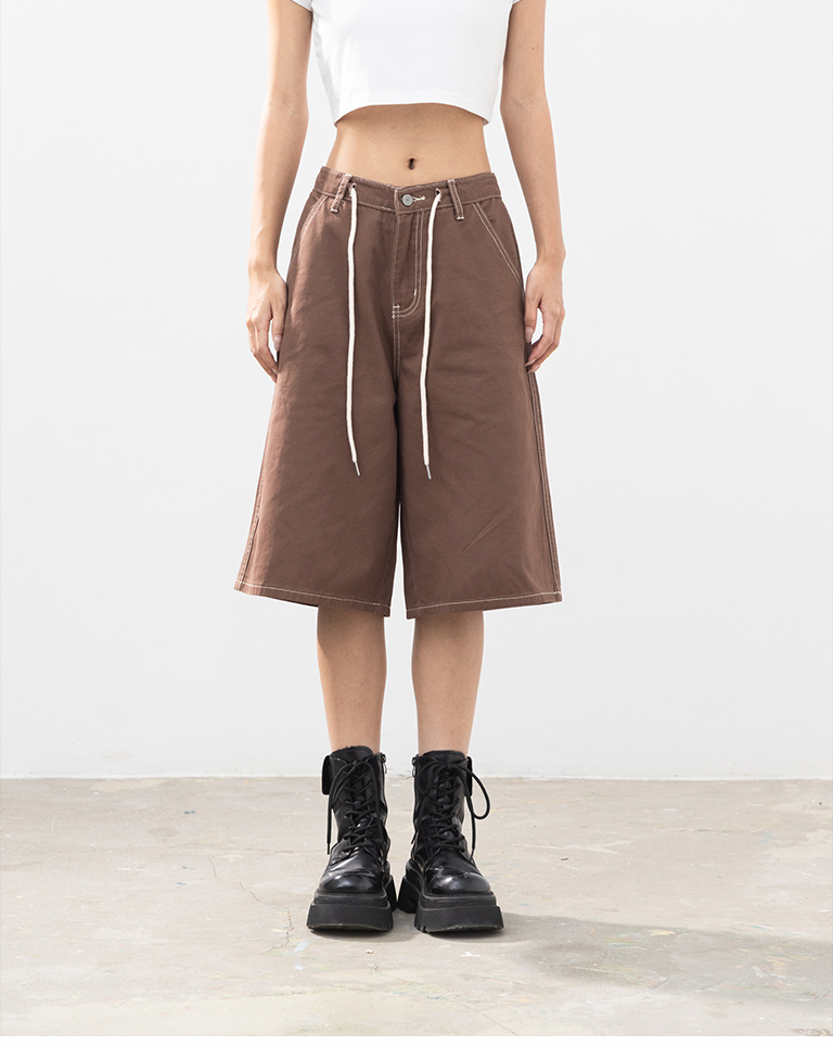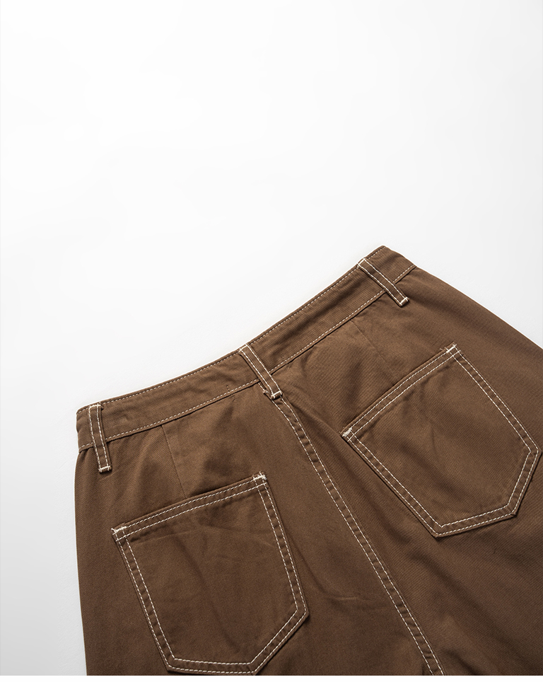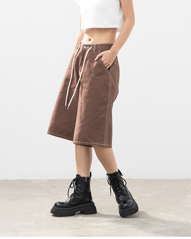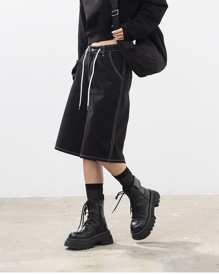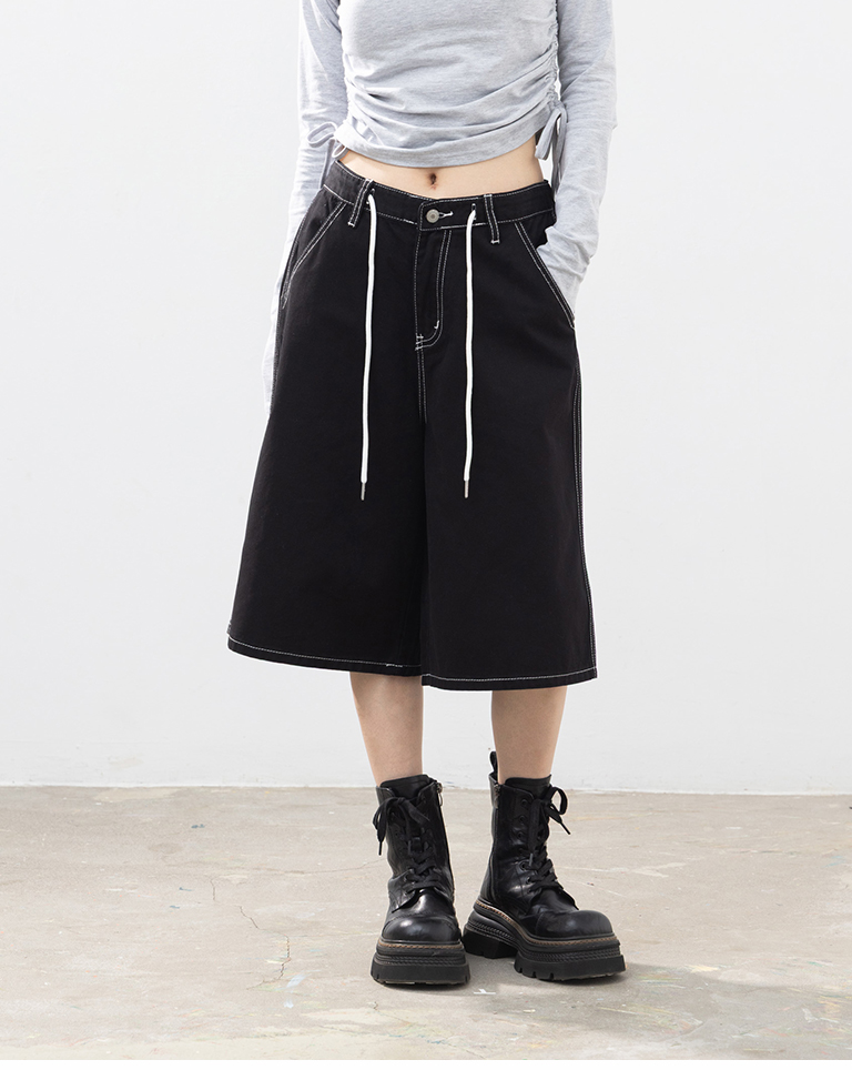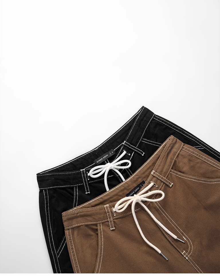 低腰設計配色車線磨毛七分褲 兩色售 S/M/L