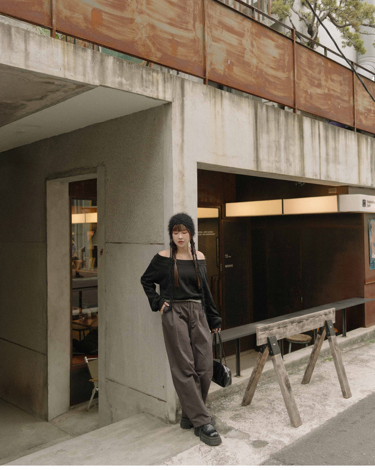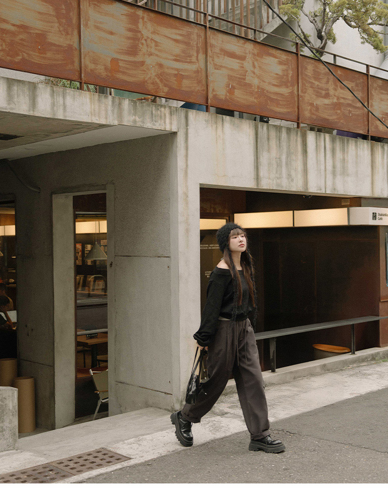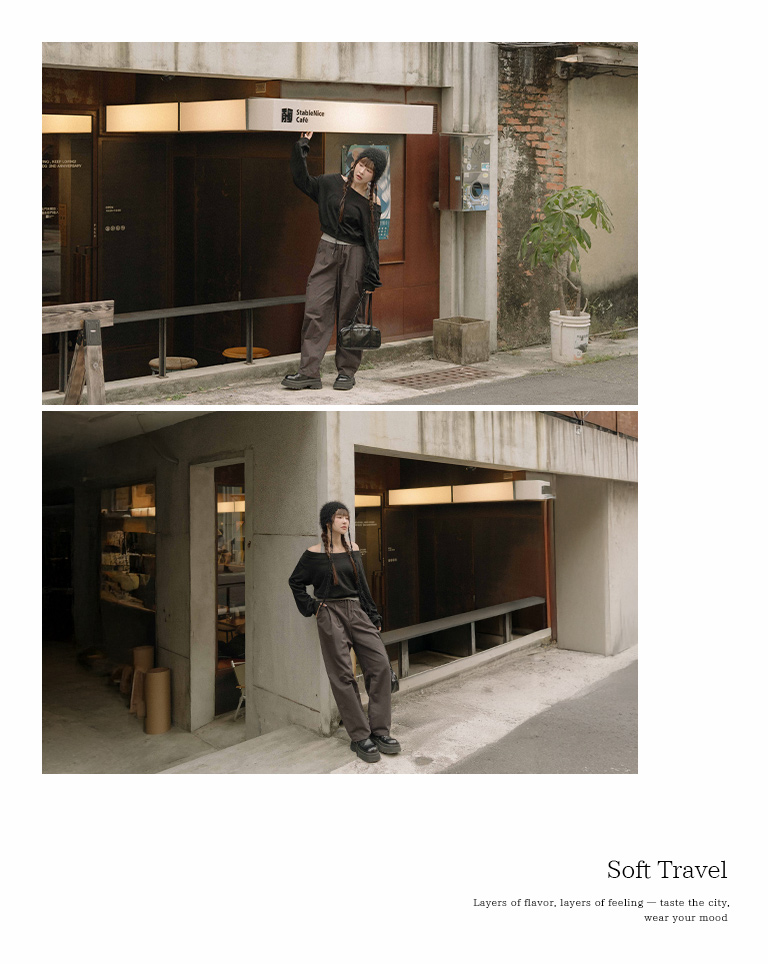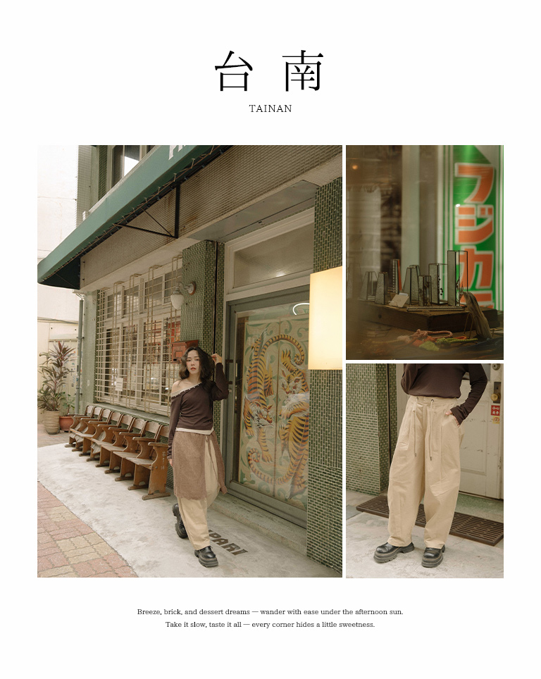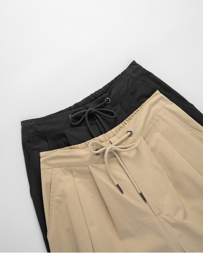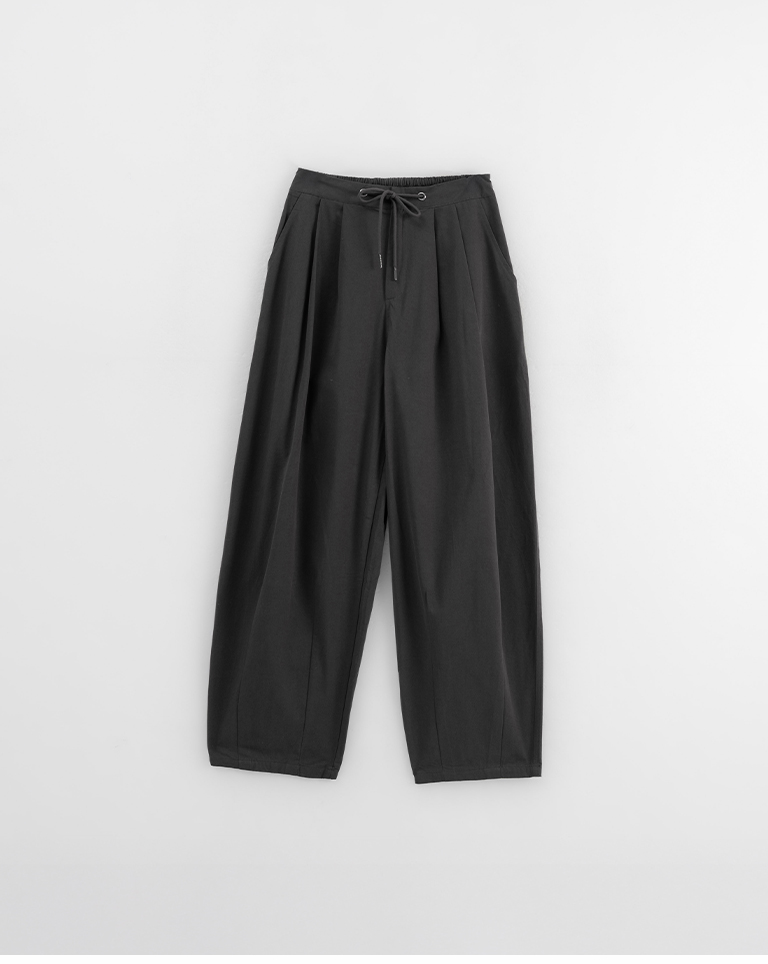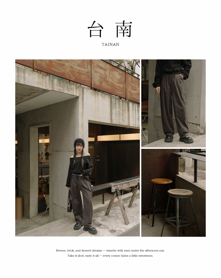 休閒抽繩打褶繭型長褲 兩色售 S/M