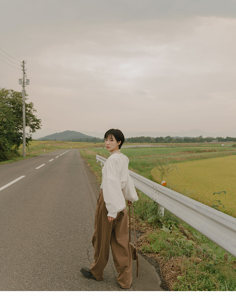 S~L身形實測!分尺寸皺皺木耳邊透膚高領長袖上衣