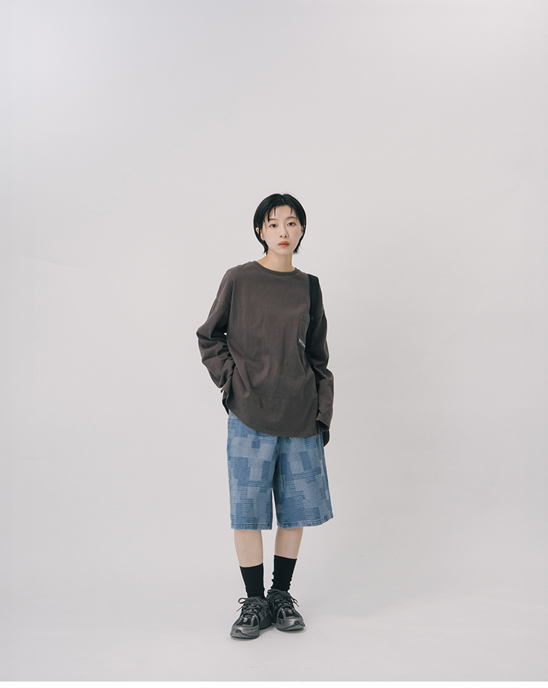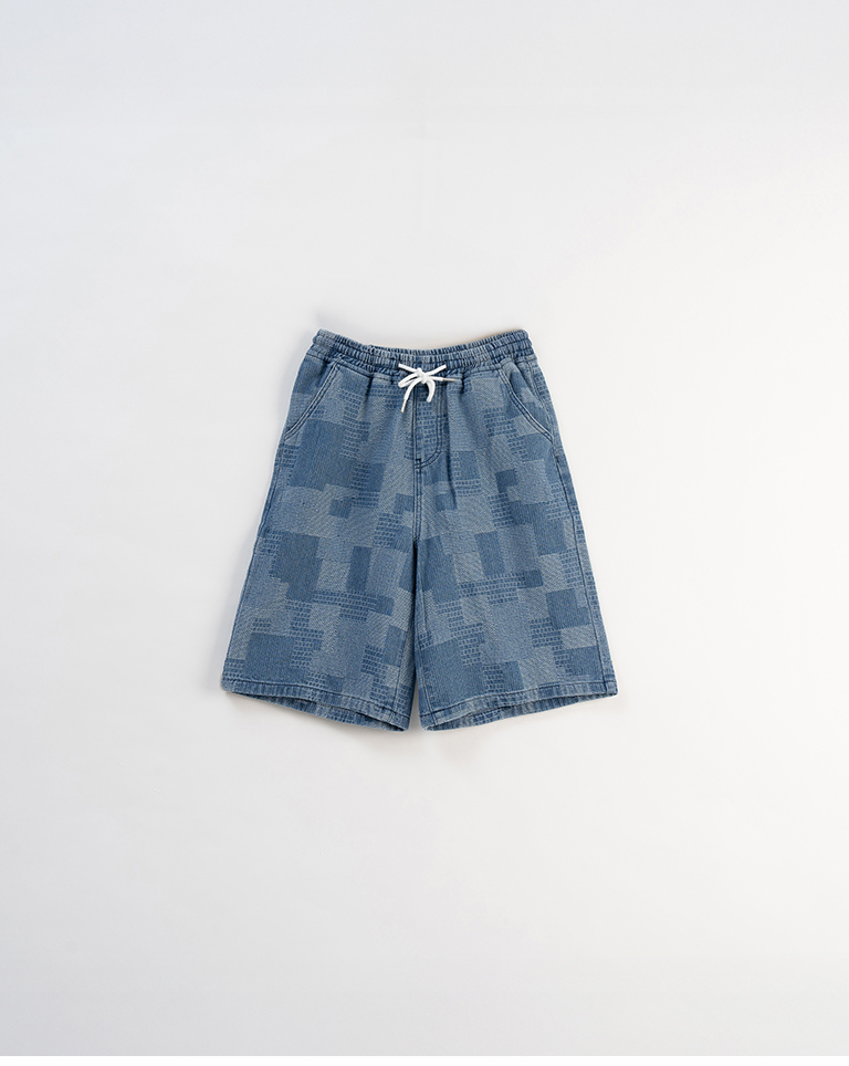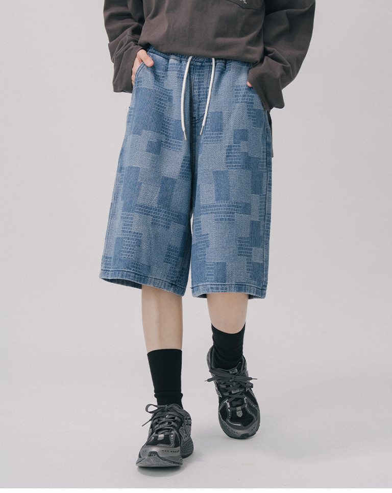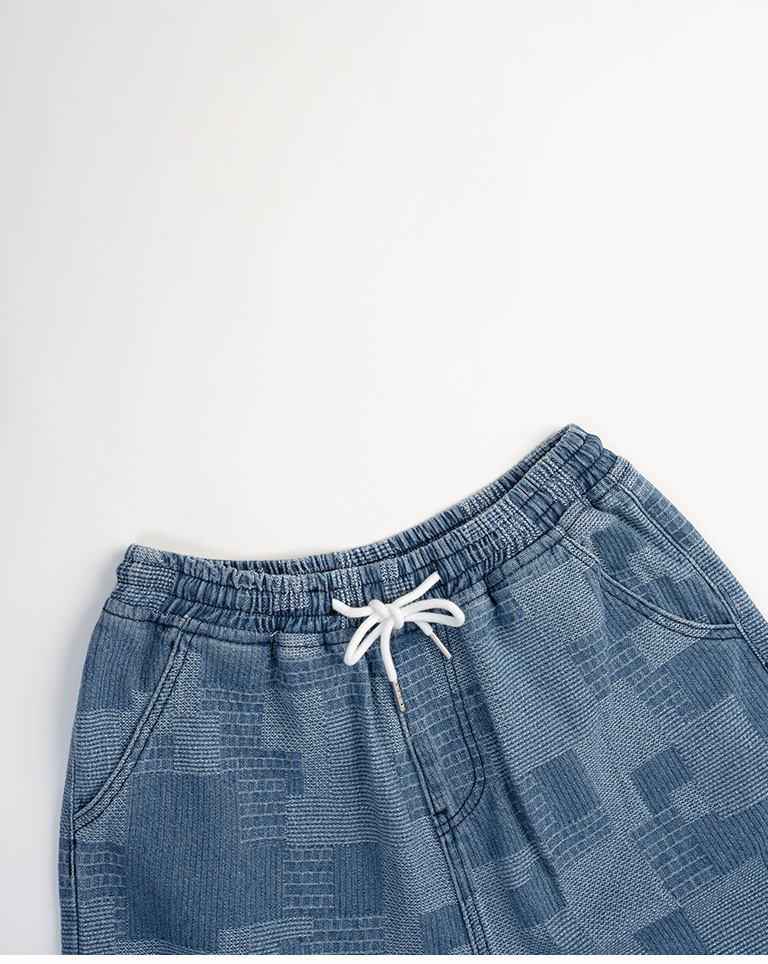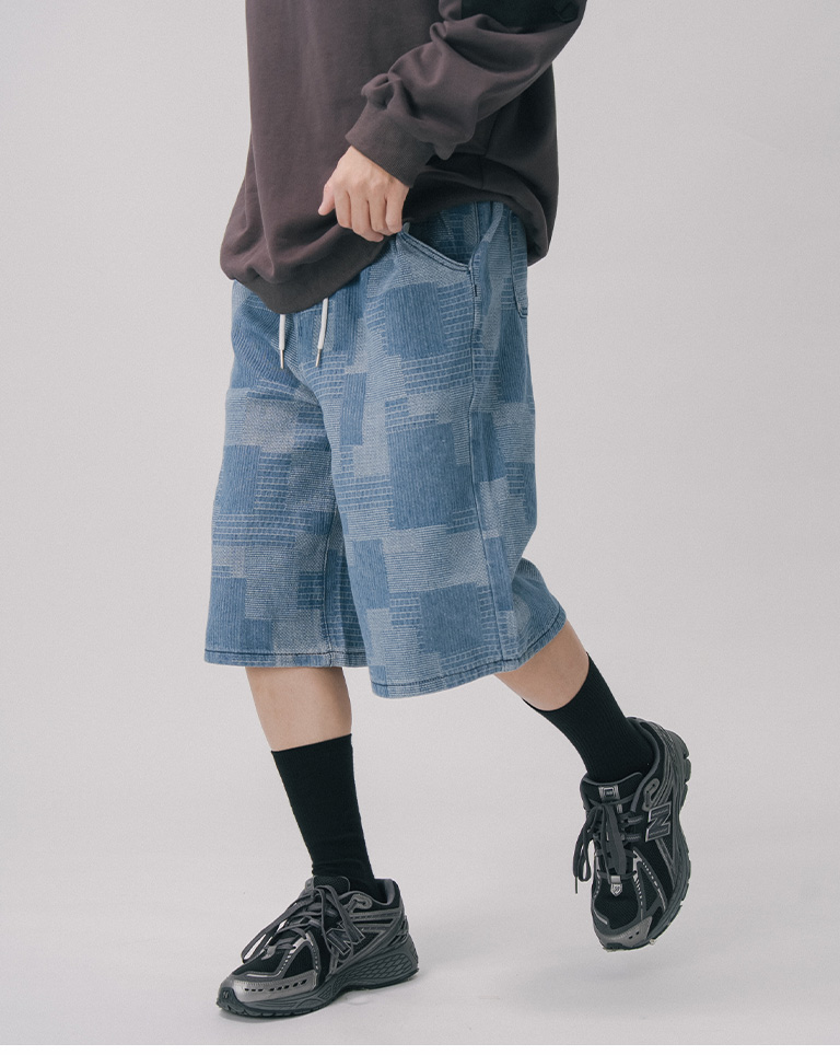 拼接抽繩設計牛仔七分短褲 1/2/3