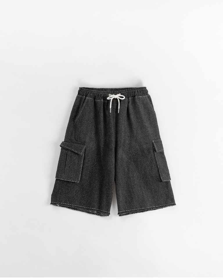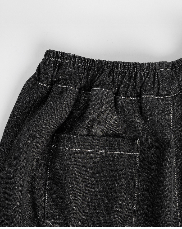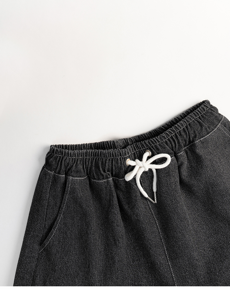 配色壓線抽繩牛仔短褲