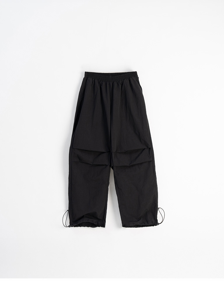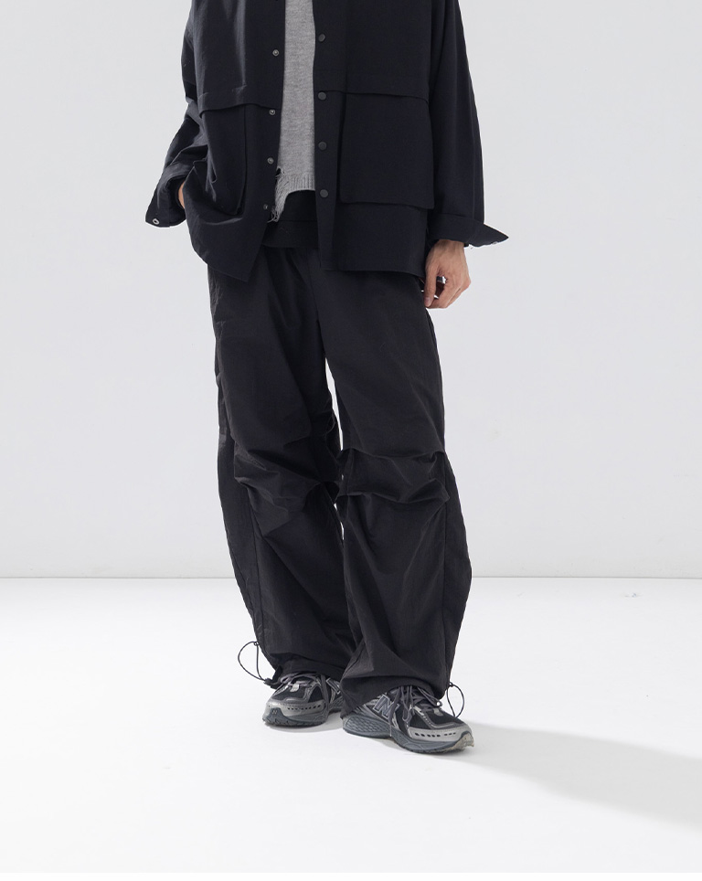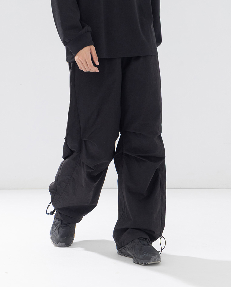 男裝 打褶剪接鬆緊腰頭工裝長褲-黑 M-XL