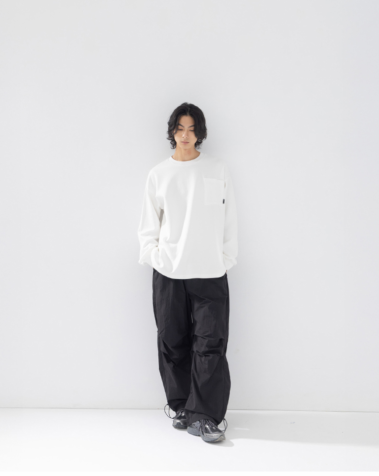 男裝 打褶剪接鬆緊腰頭工裝長褲