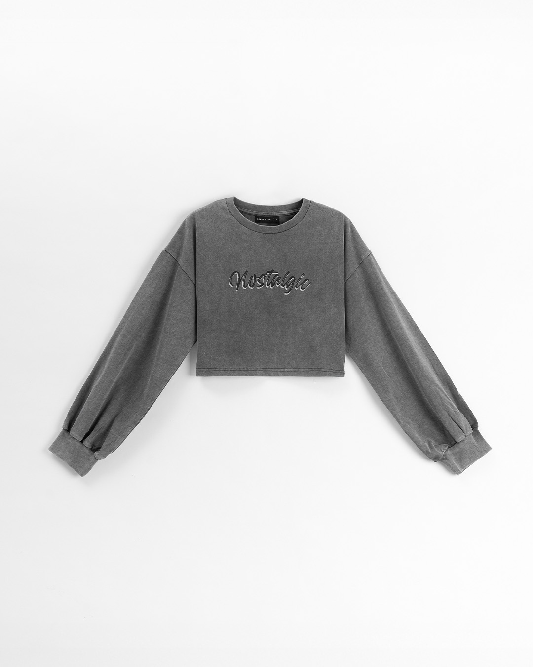 多尺寸示範|素面指洞設計短版長袖上衣