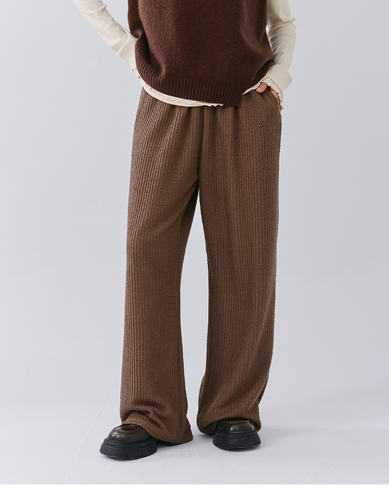 休閒毛絨直紋緹花造型長褲