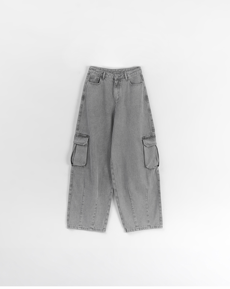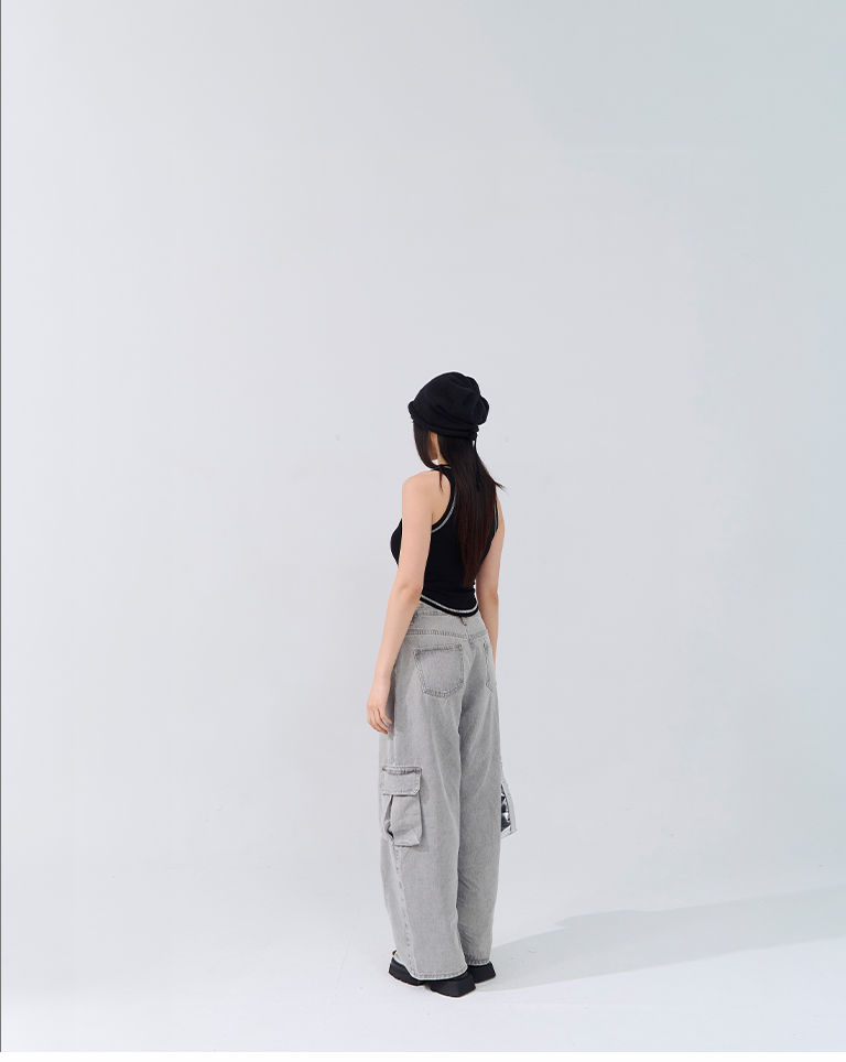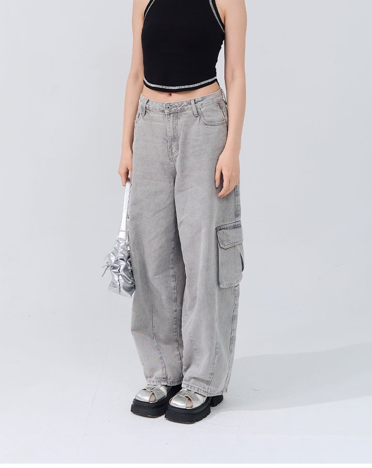 打褶大口袋繭型工裝牛仔褲 XS/S/M/L