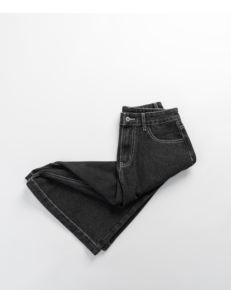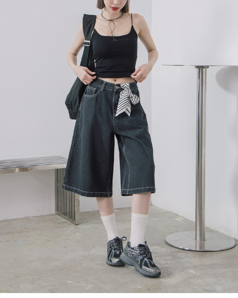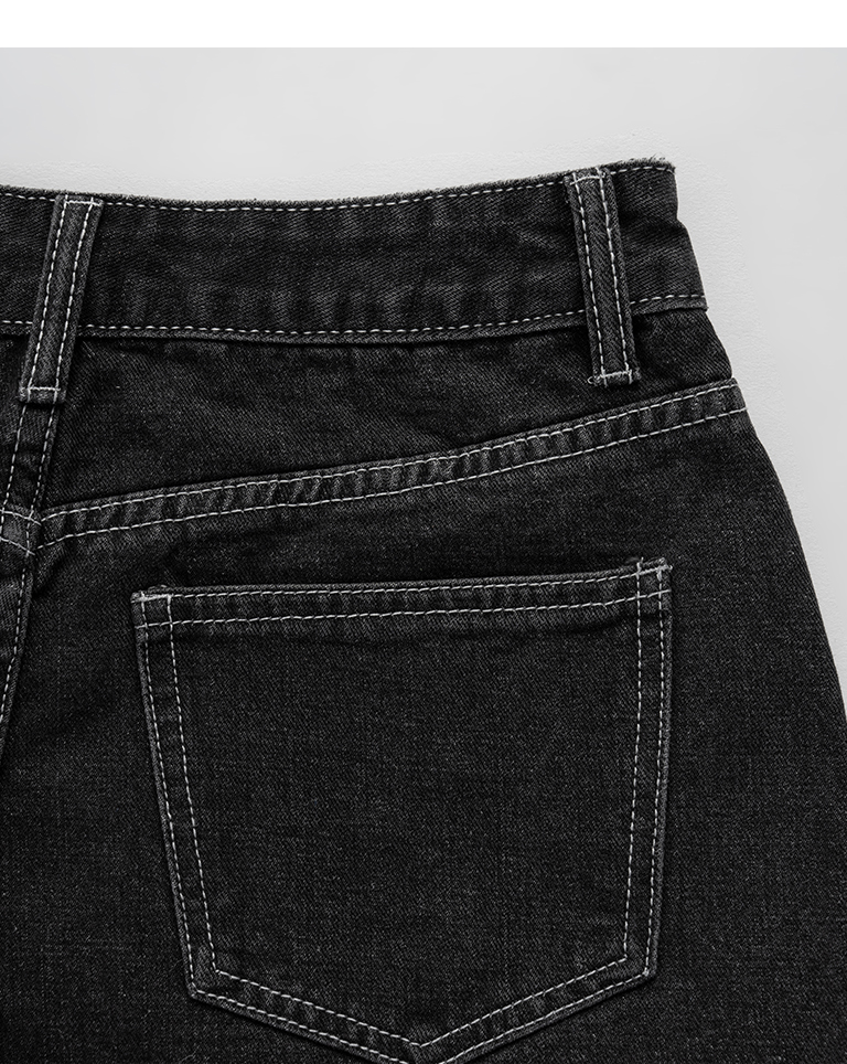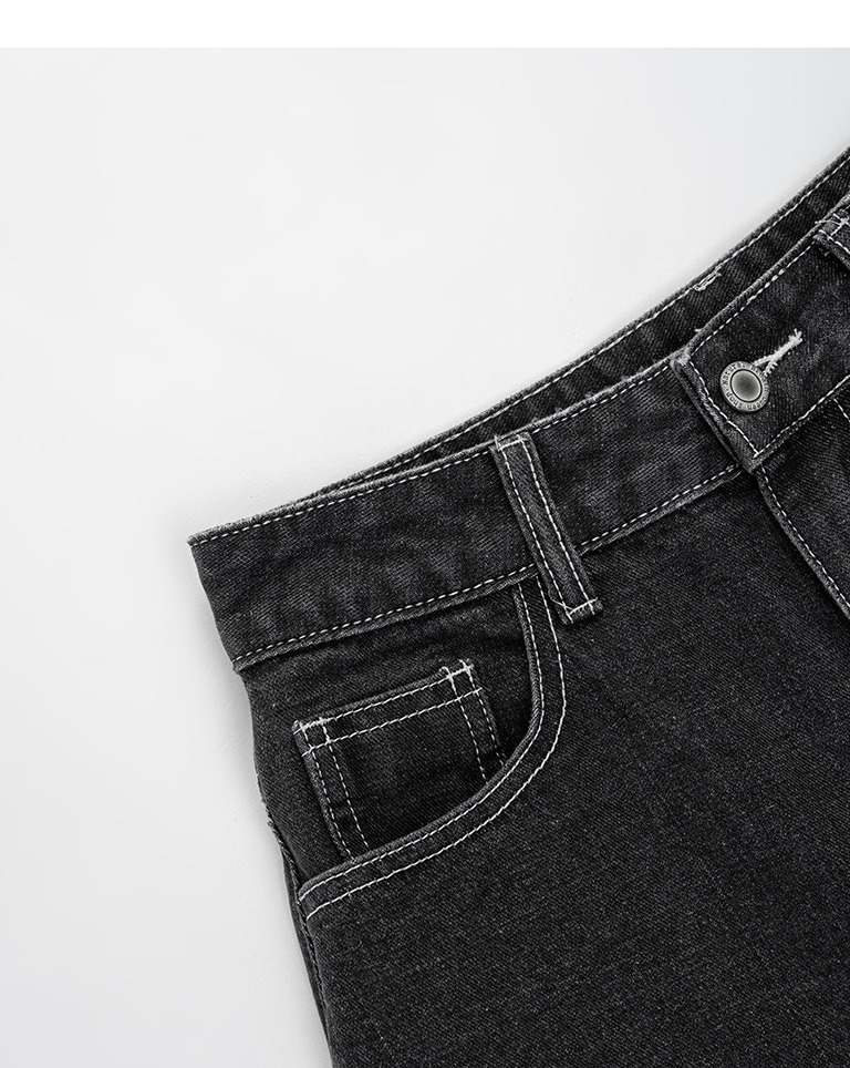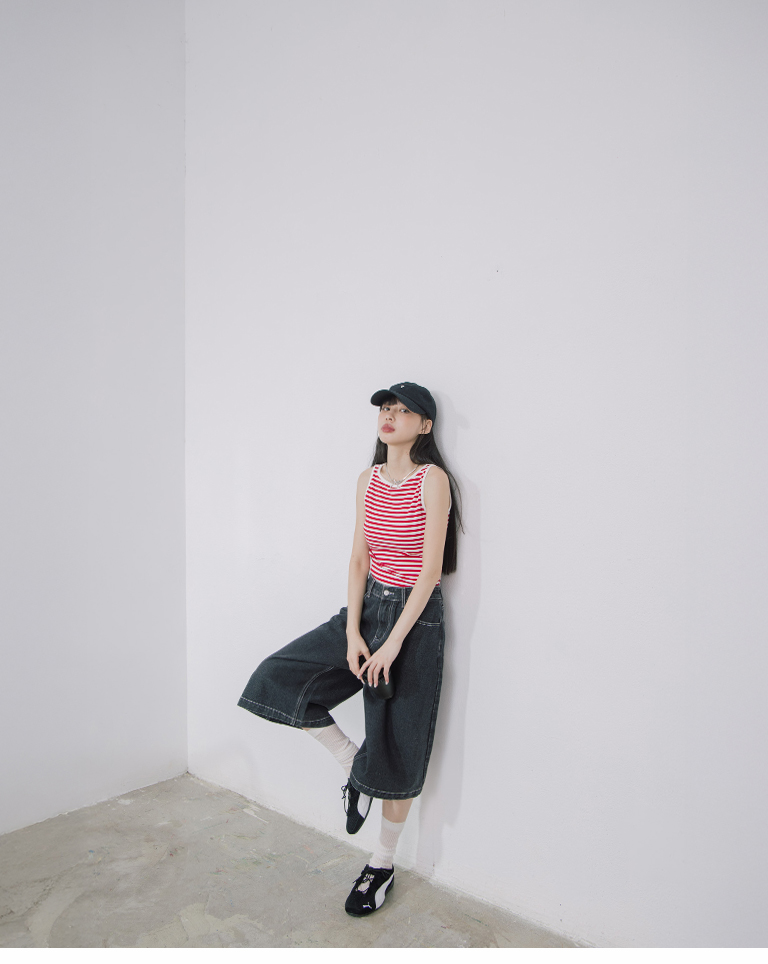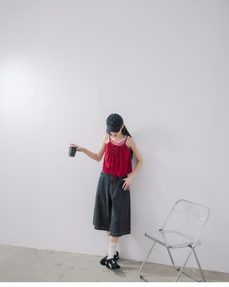低腰設計剪接車線牛仔褲七分褲 S/M/L