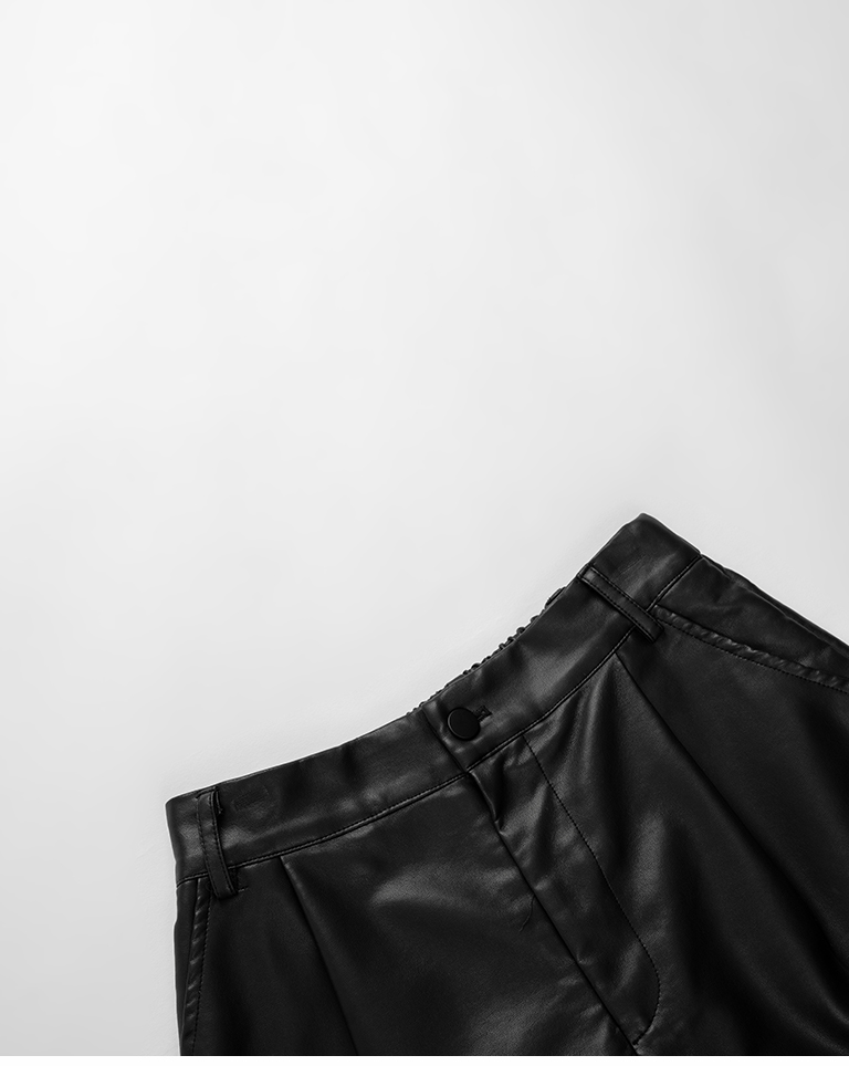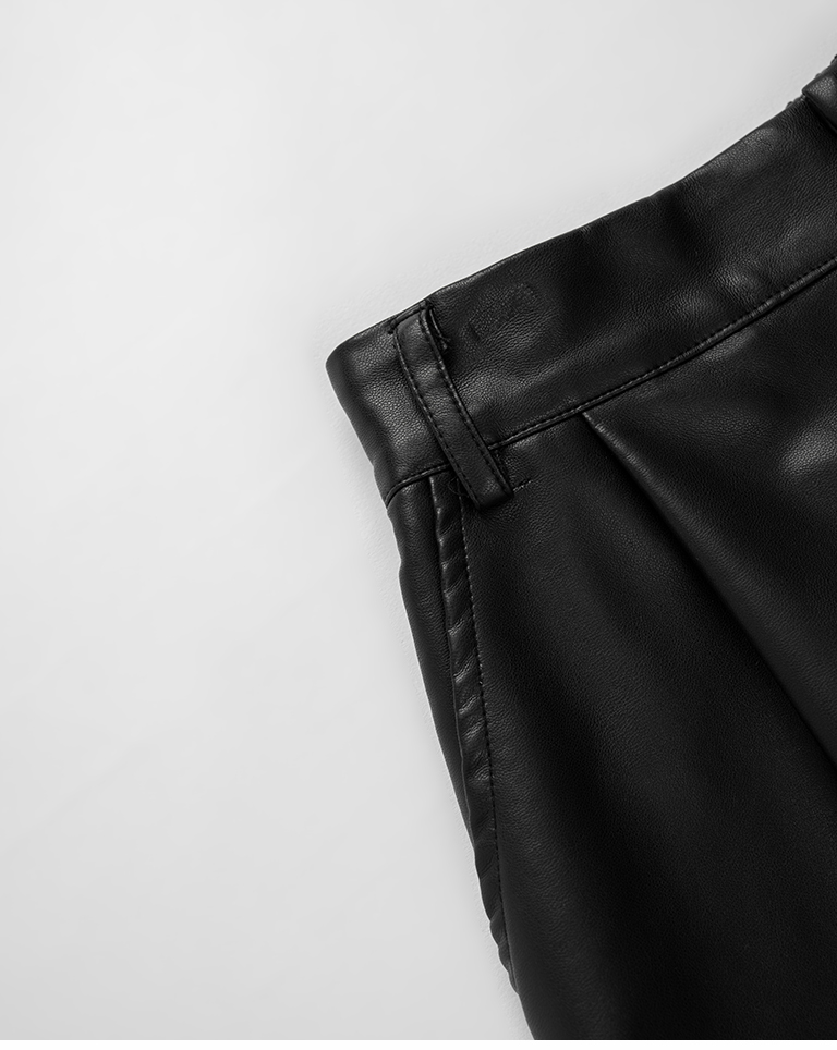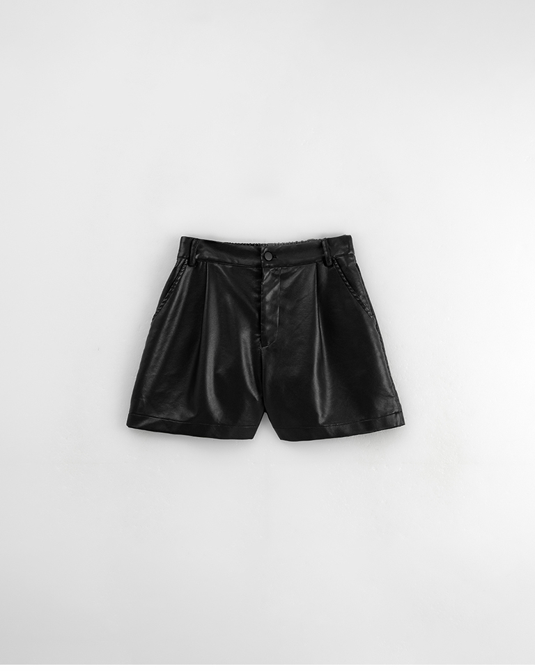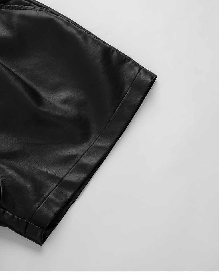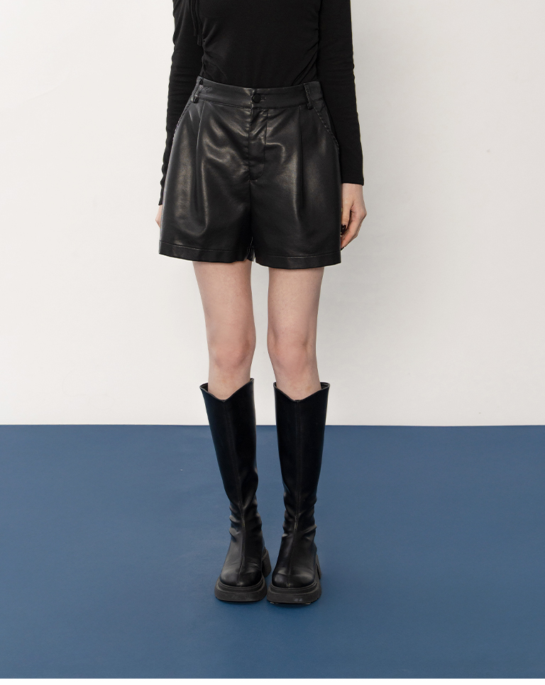 質感霧面打褶高腰皮革短褲