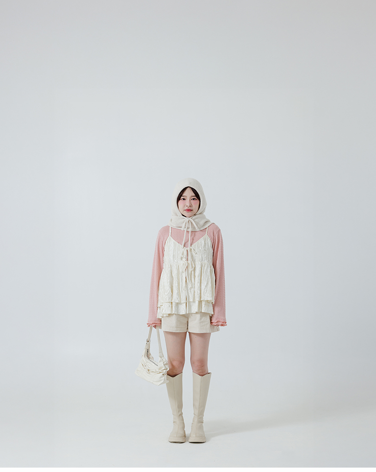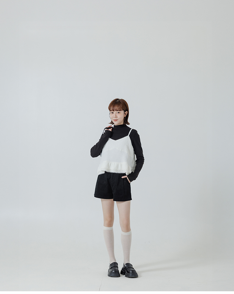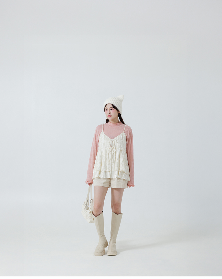 S~L身形實測!分尺寸皺皺木耳邊透膚高領長袖上衣