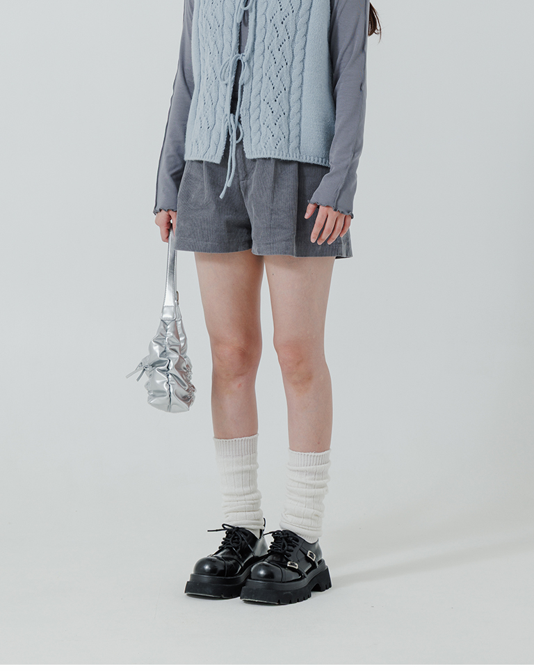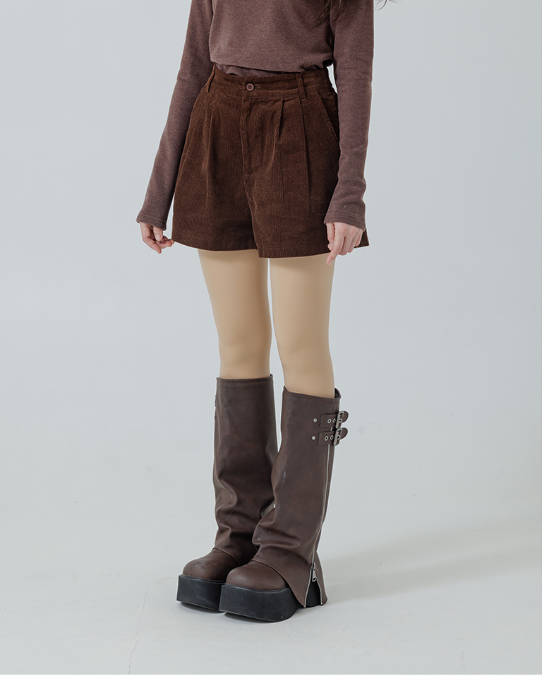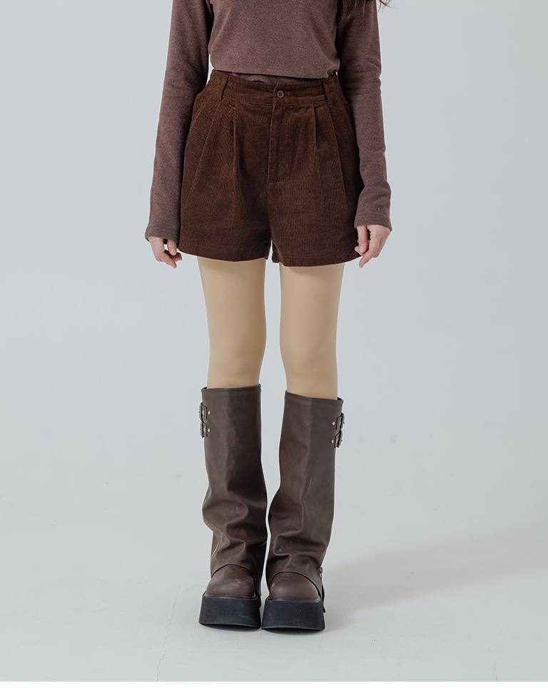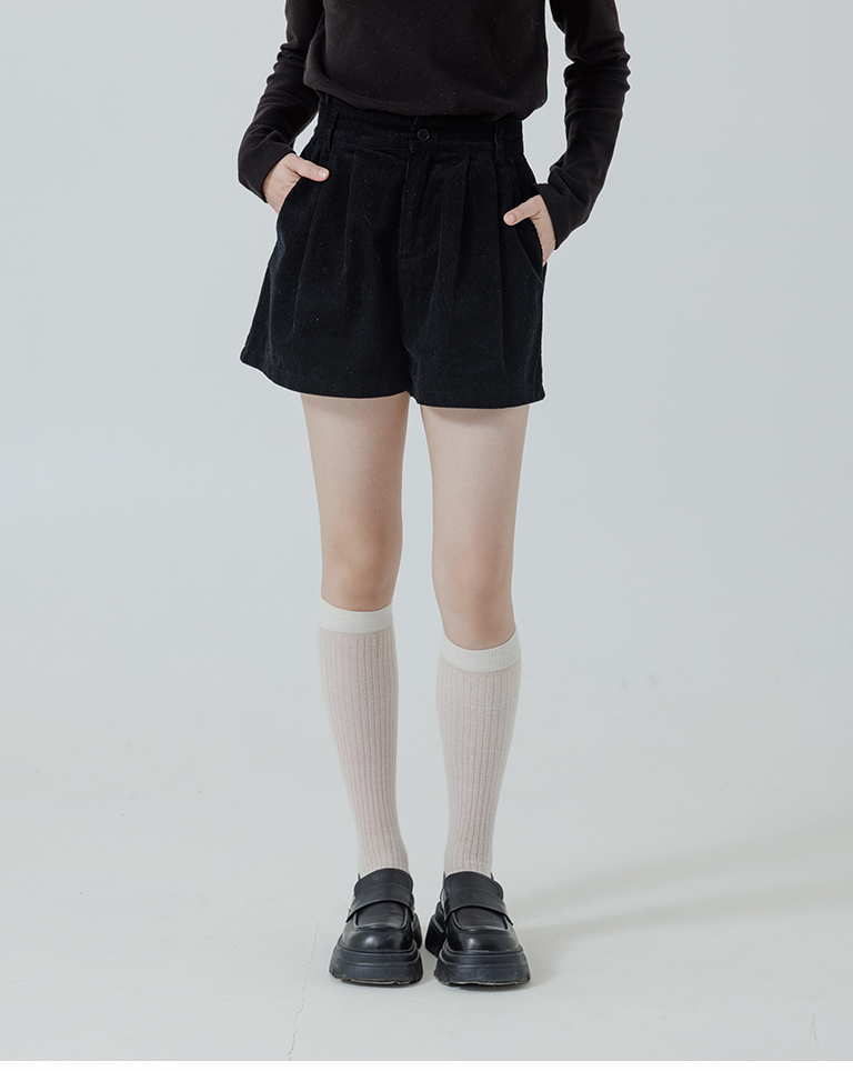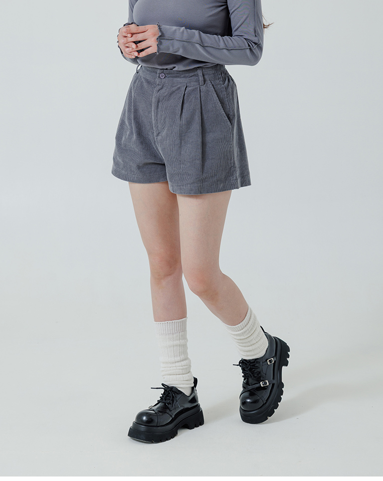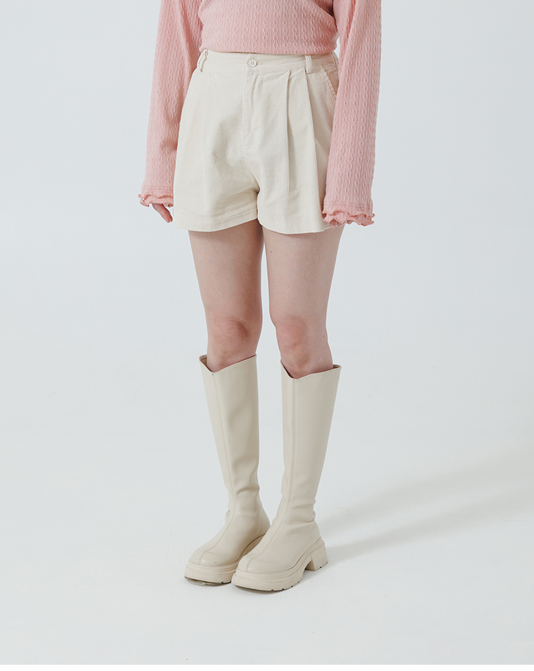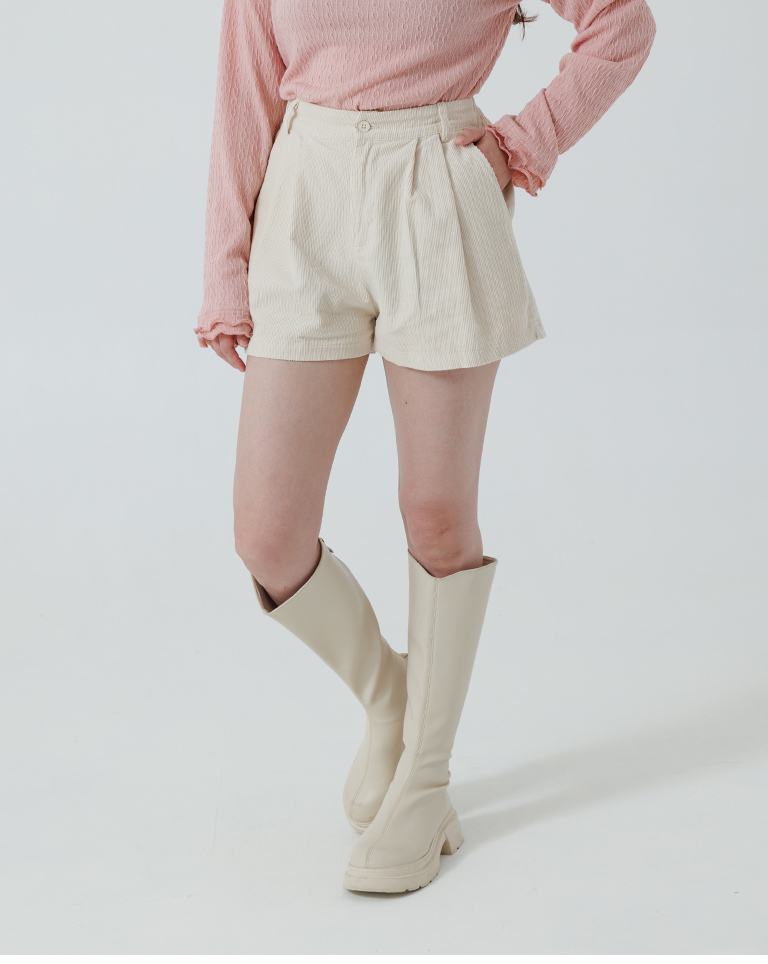 簡約打褶設計燈芯絨短褲 四色售 S/M/L