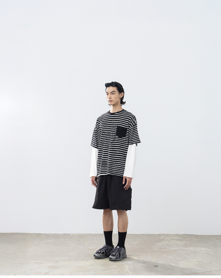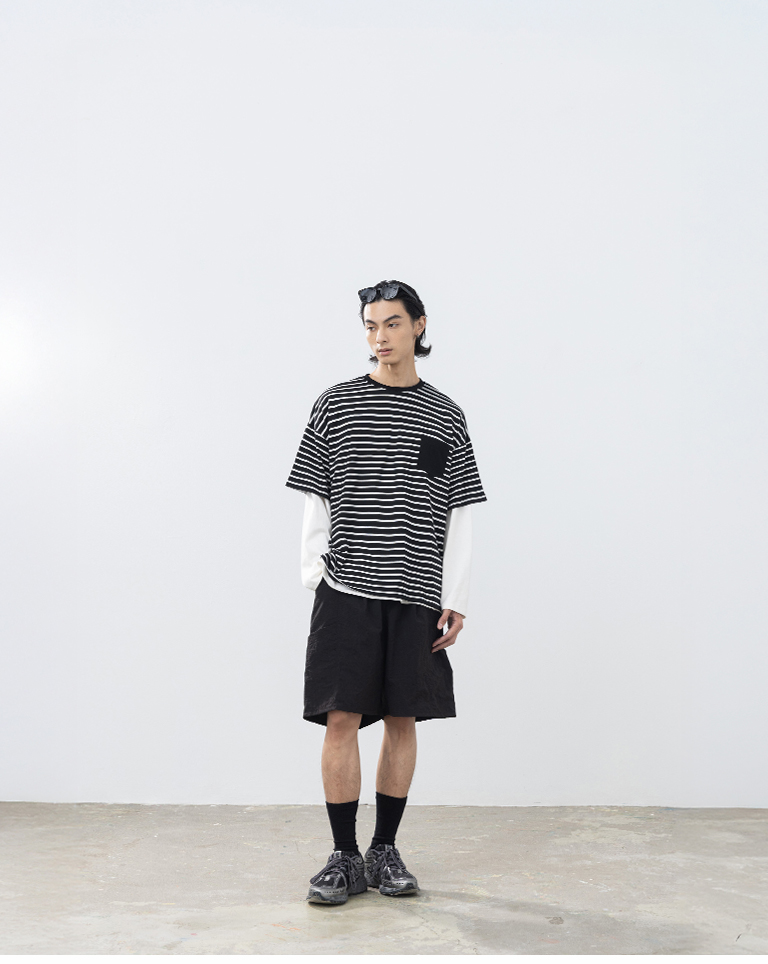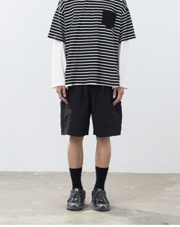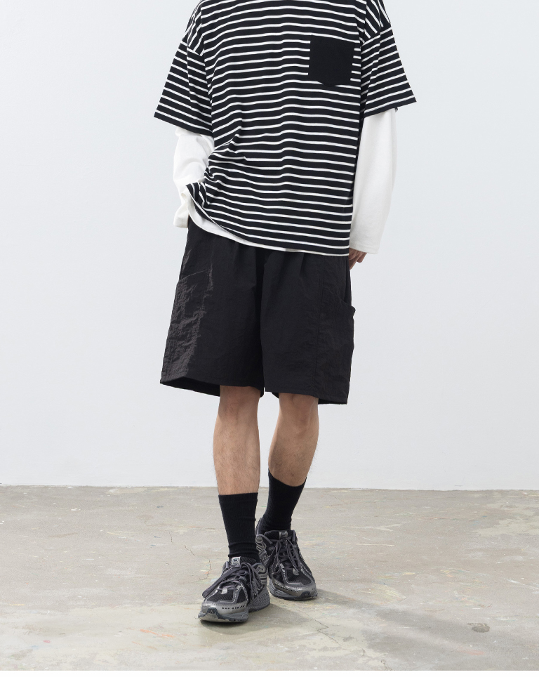 男裝 剪接口袋設計刷刷短褲-黑S/M/L/XL