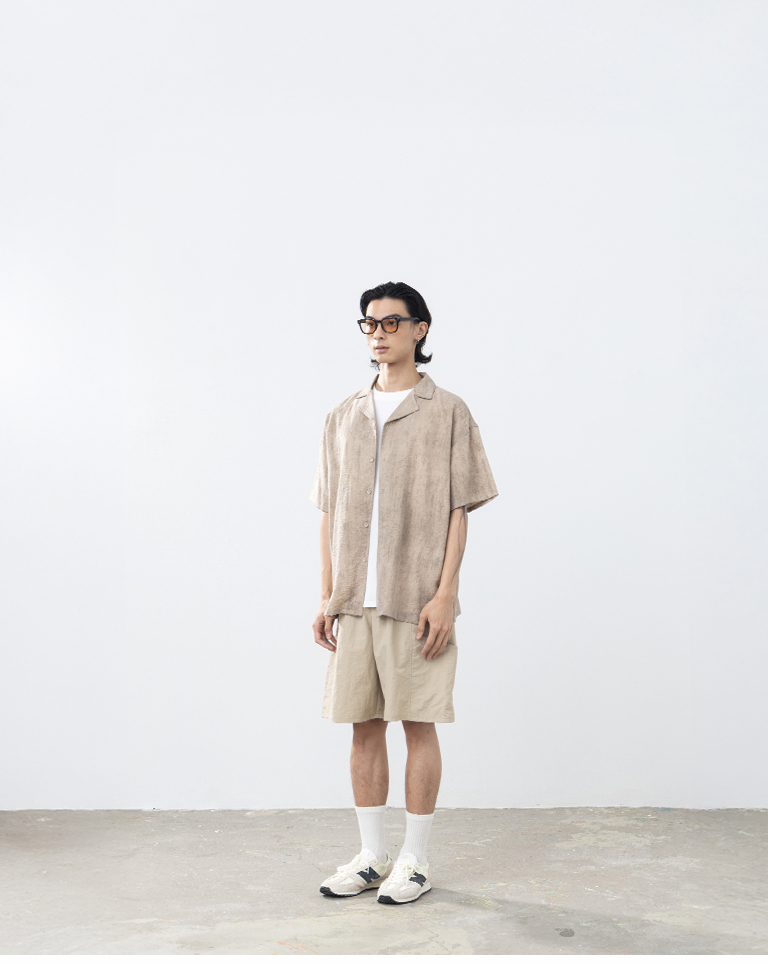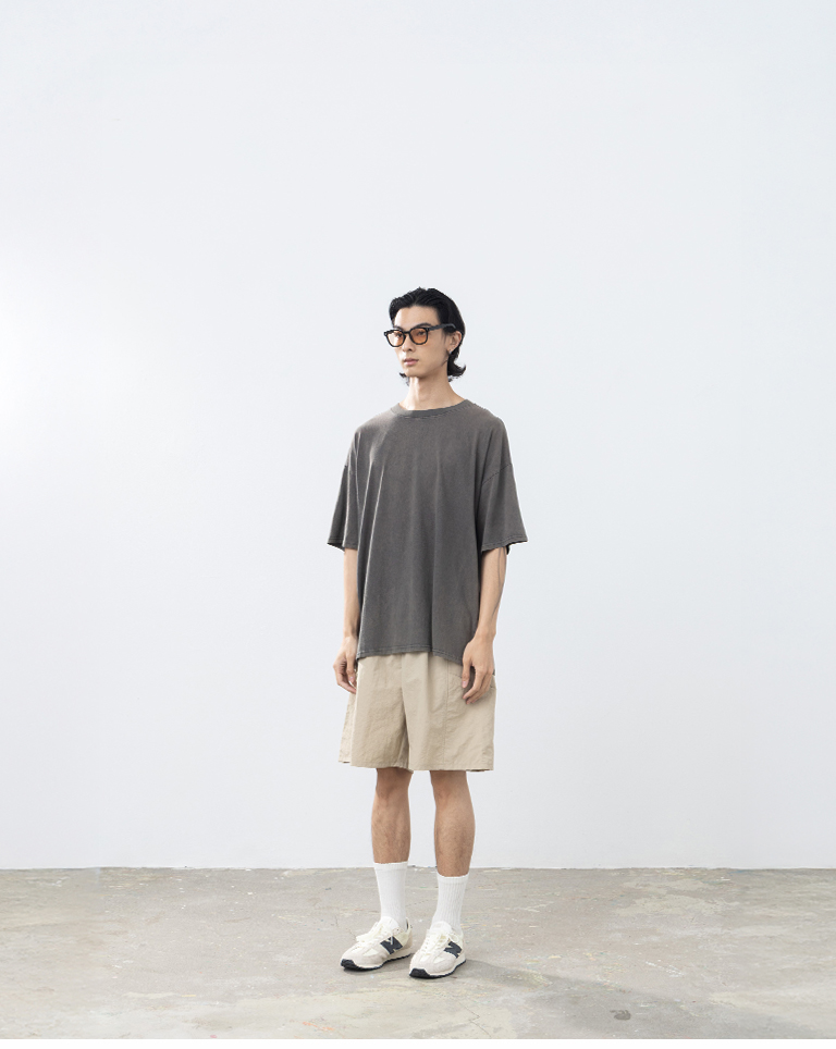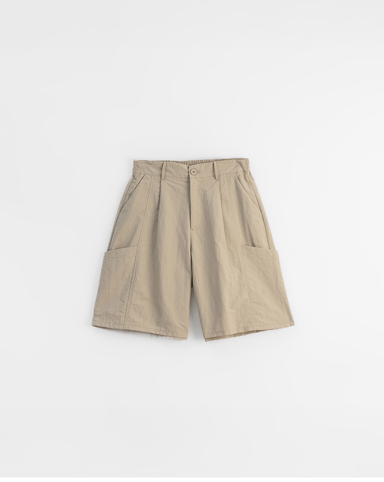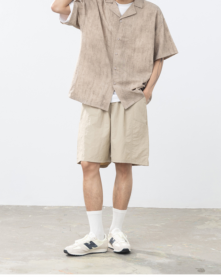 男裝 剪接口袋設計刷刷短褲-卡其S/M/L/XL