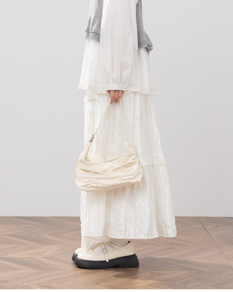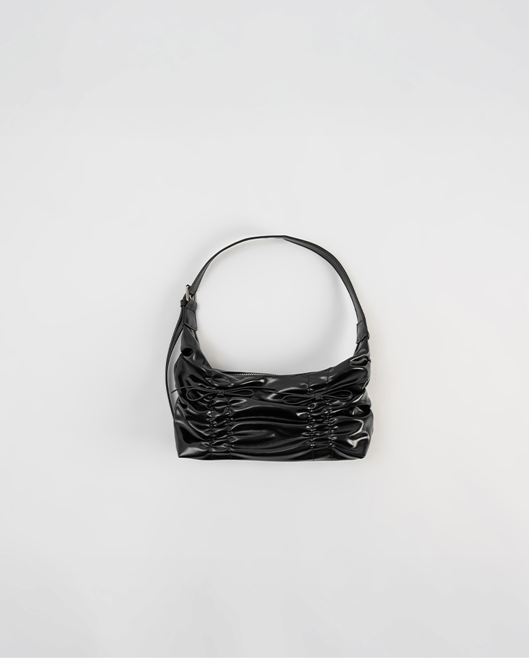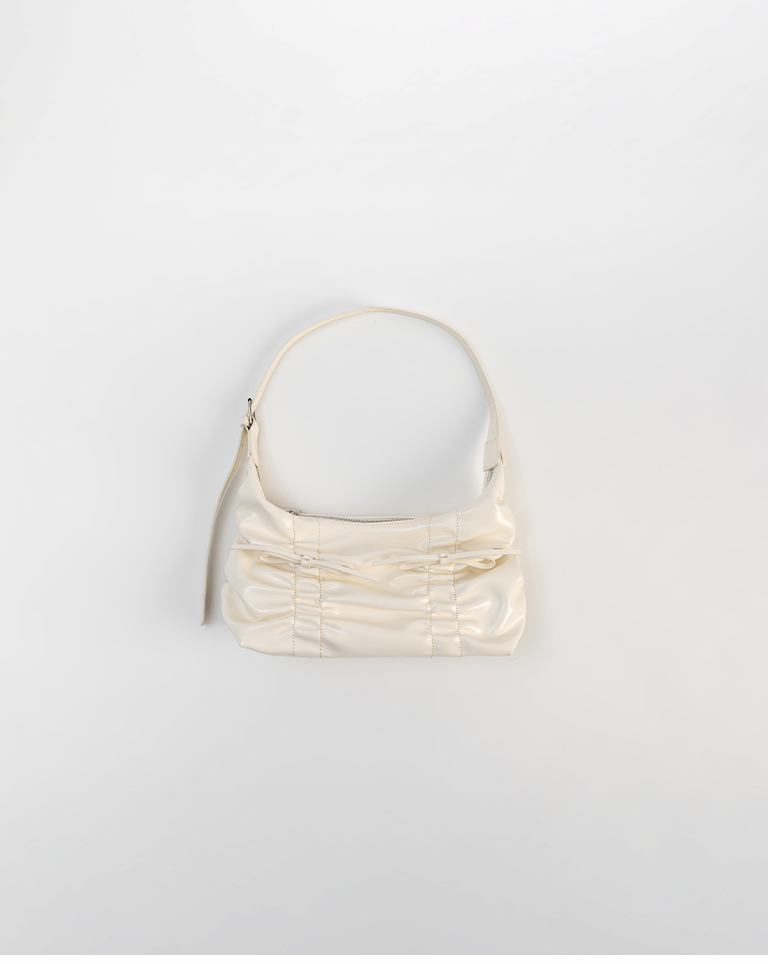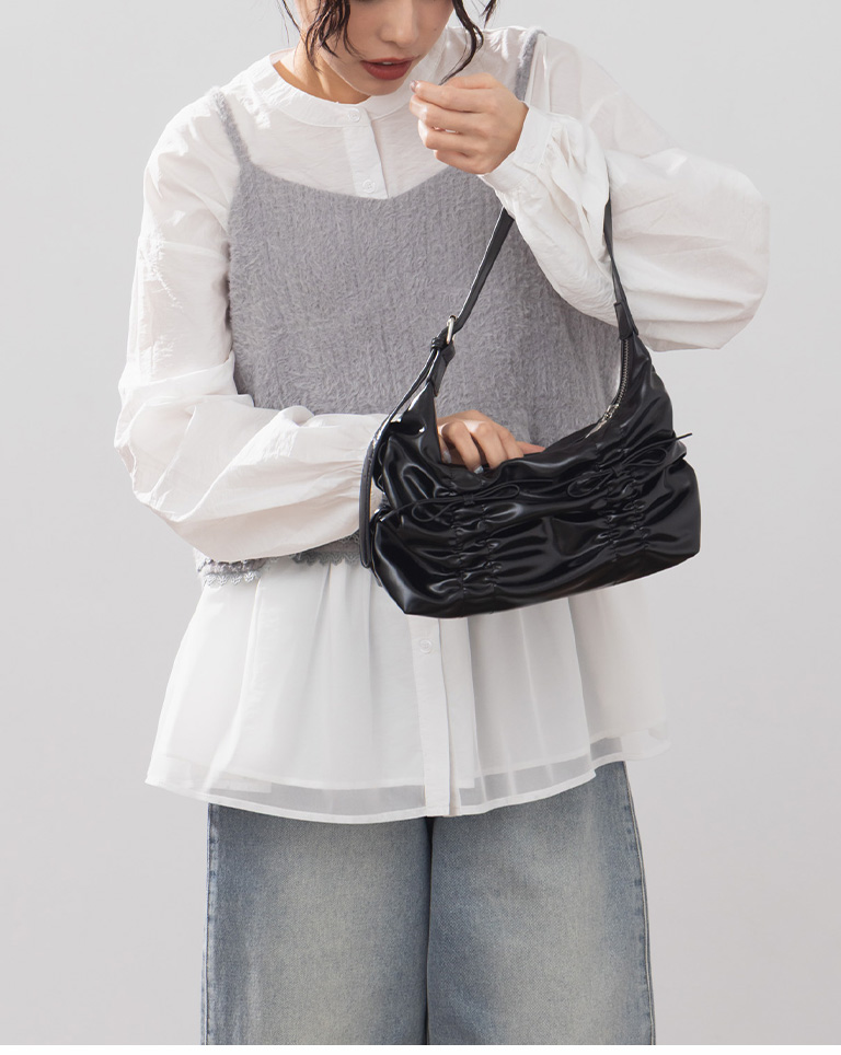 抓皺蝴蝶結皮革肩背包附背帶