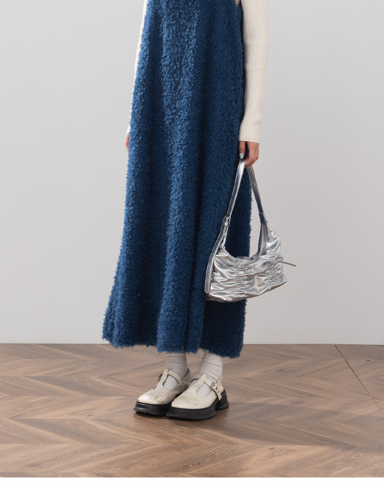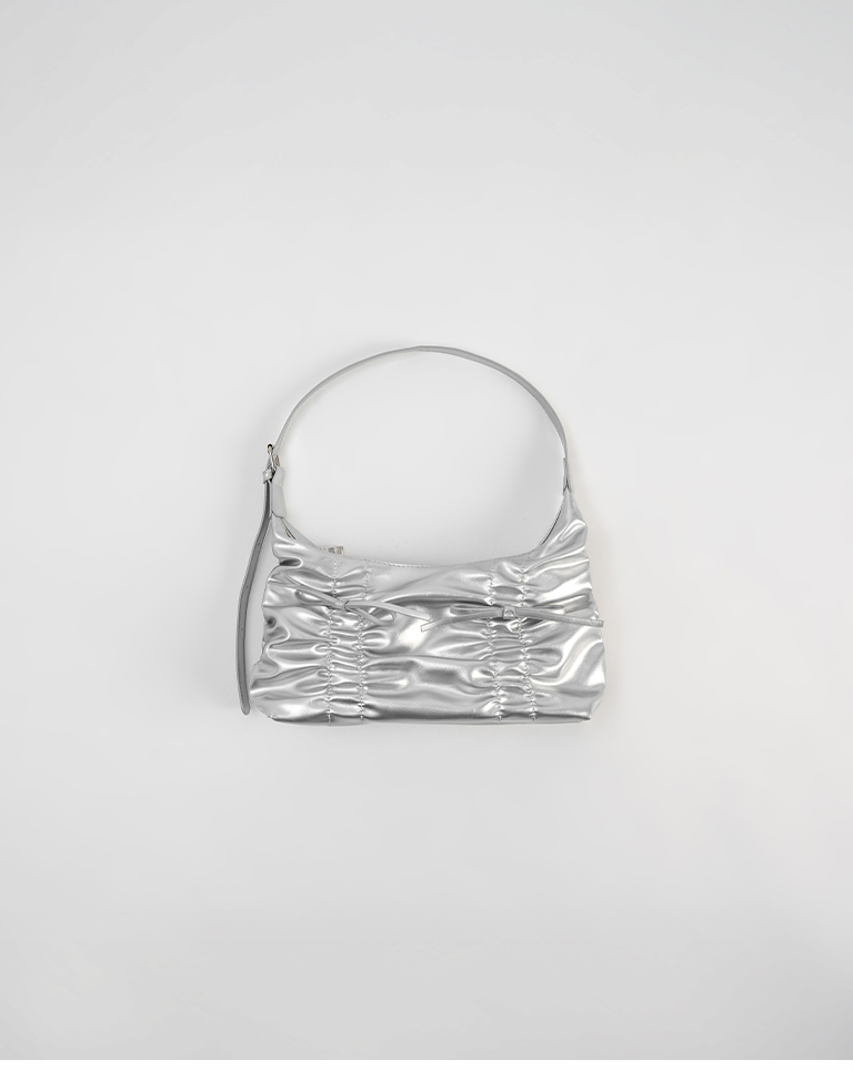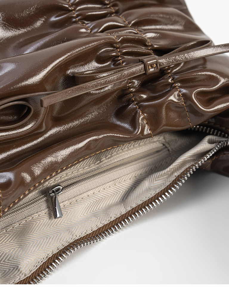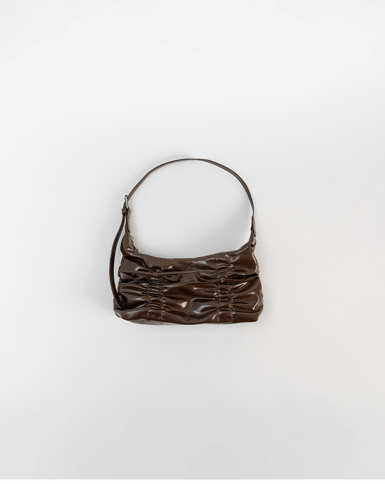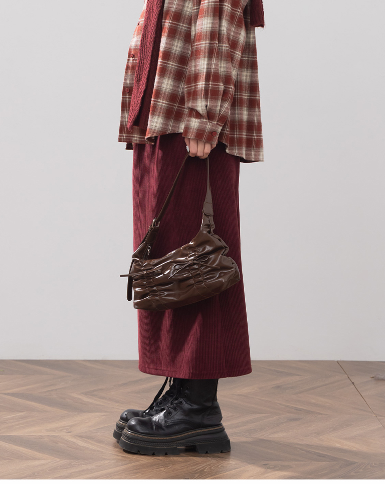 抓皺蝴蝶結皮革肩背包附背帶