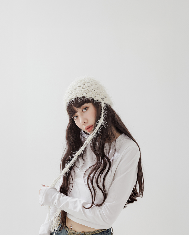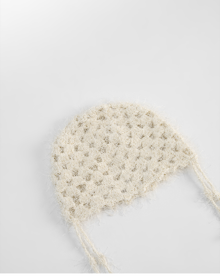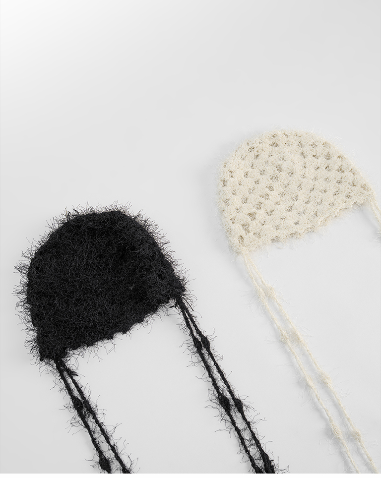 毛絨鏤空垂墜線條造型編織帽