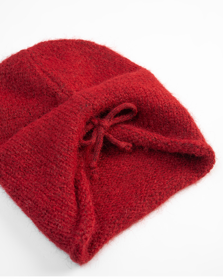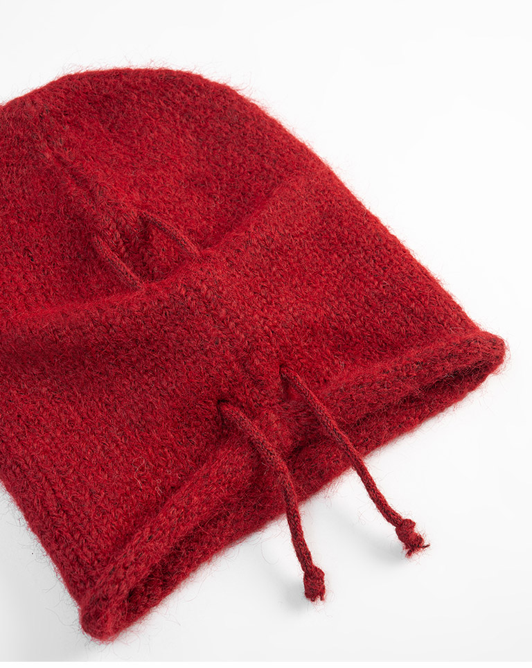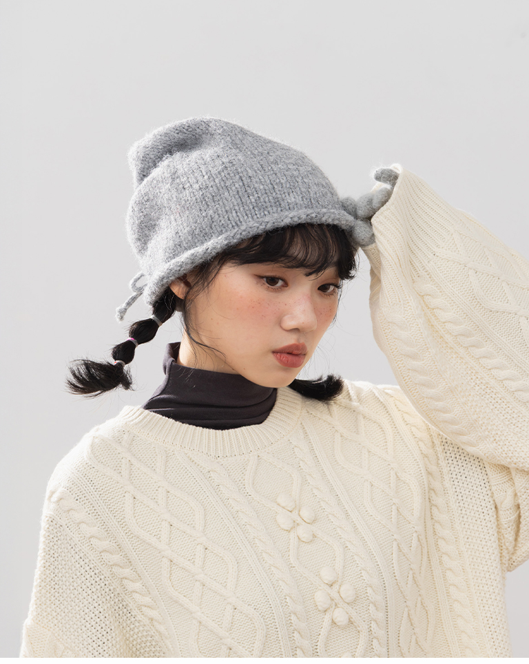 抽繩毛絨設計堆堆針織毛帽