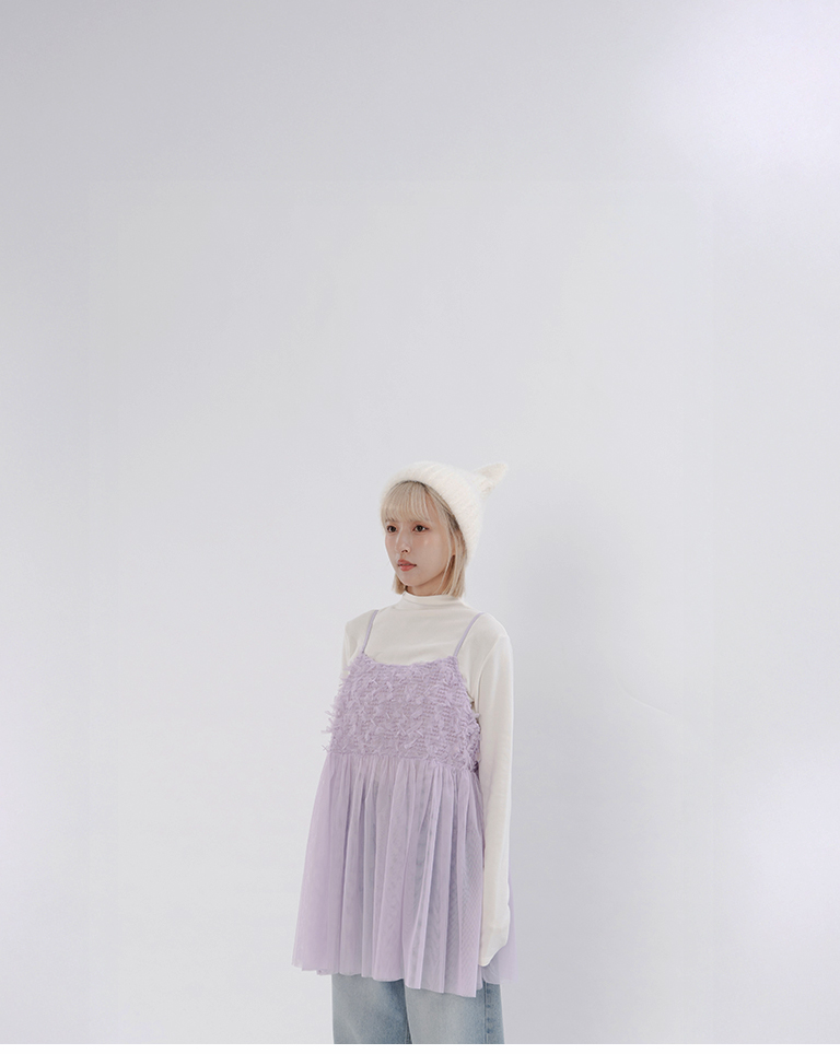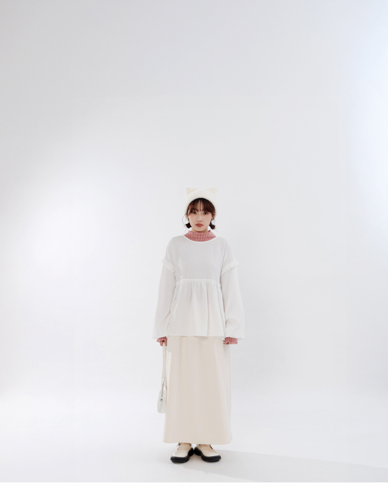 S~L身形實測!分尺寸皺皺木耳邊透膚高領長袖上衣