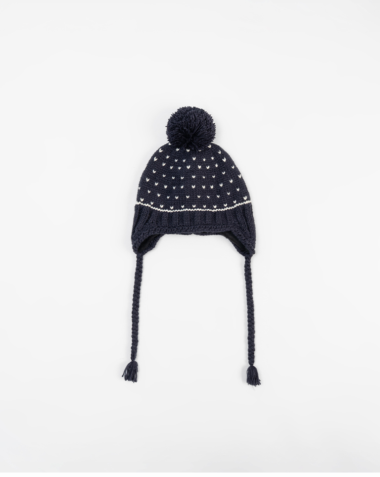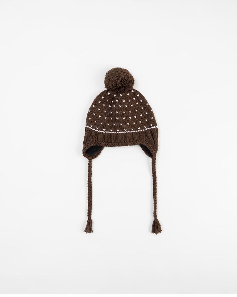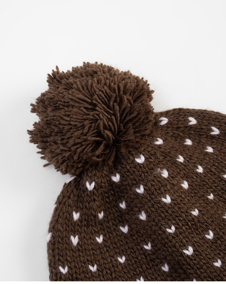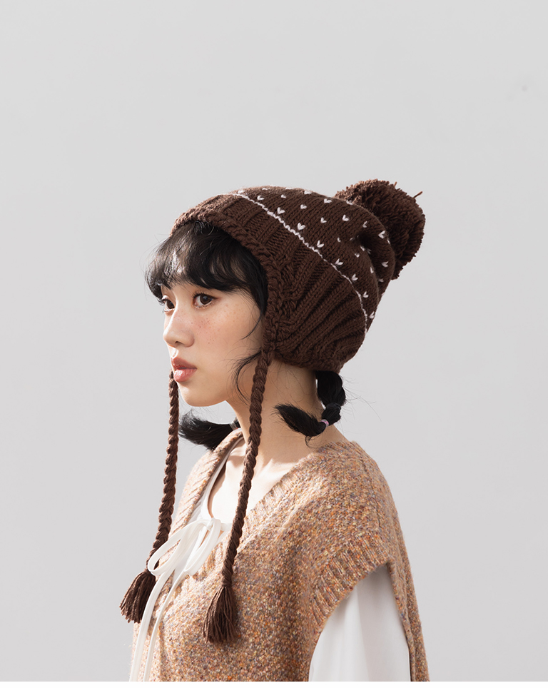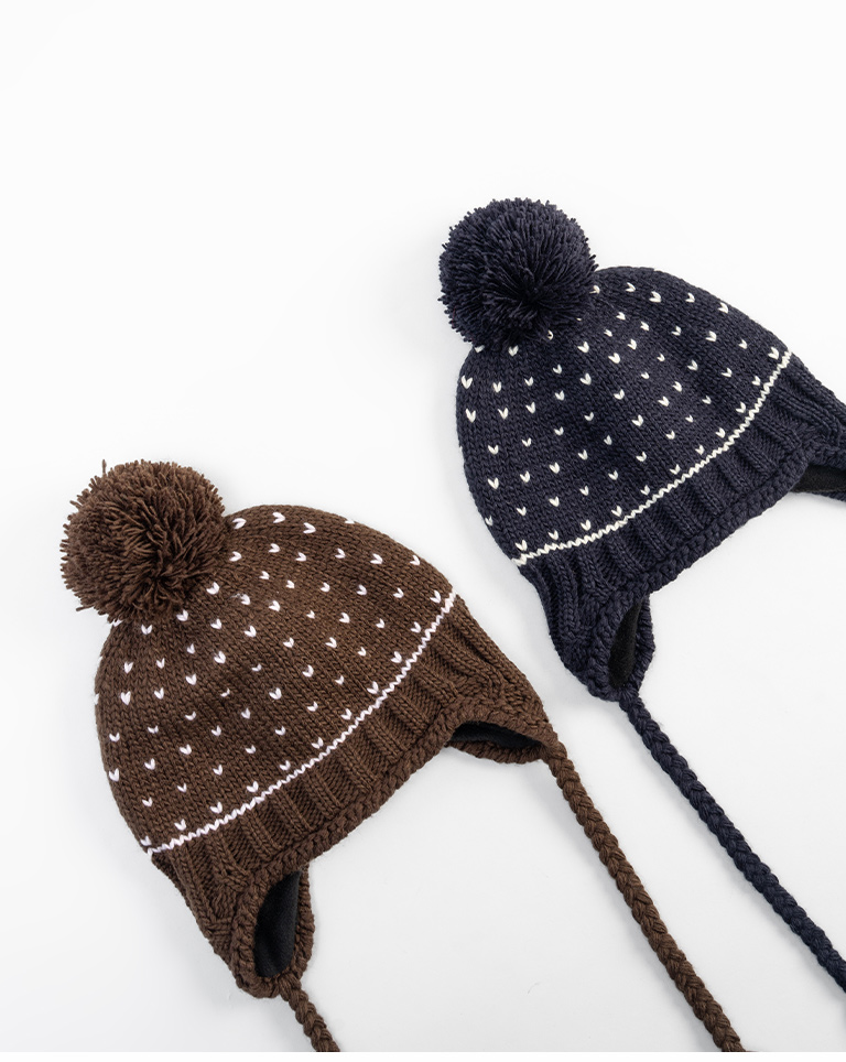 小愛心毛球內加絨針織毛帽