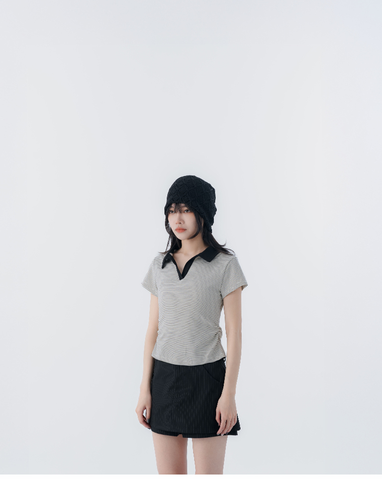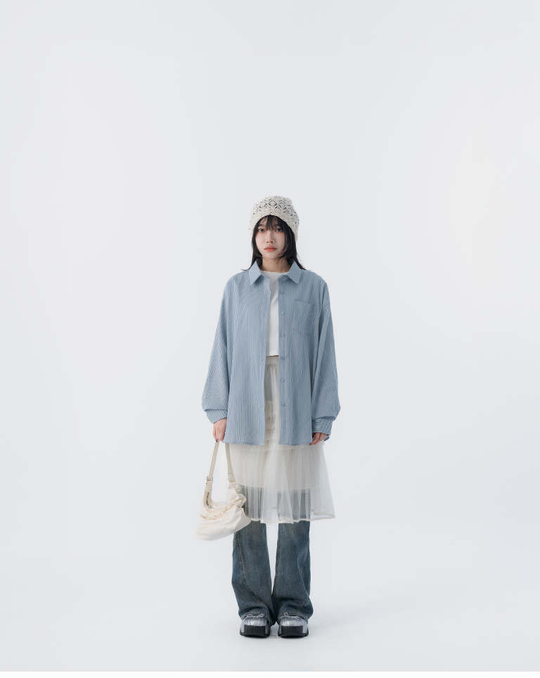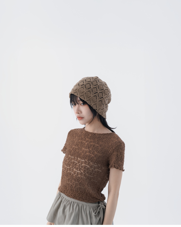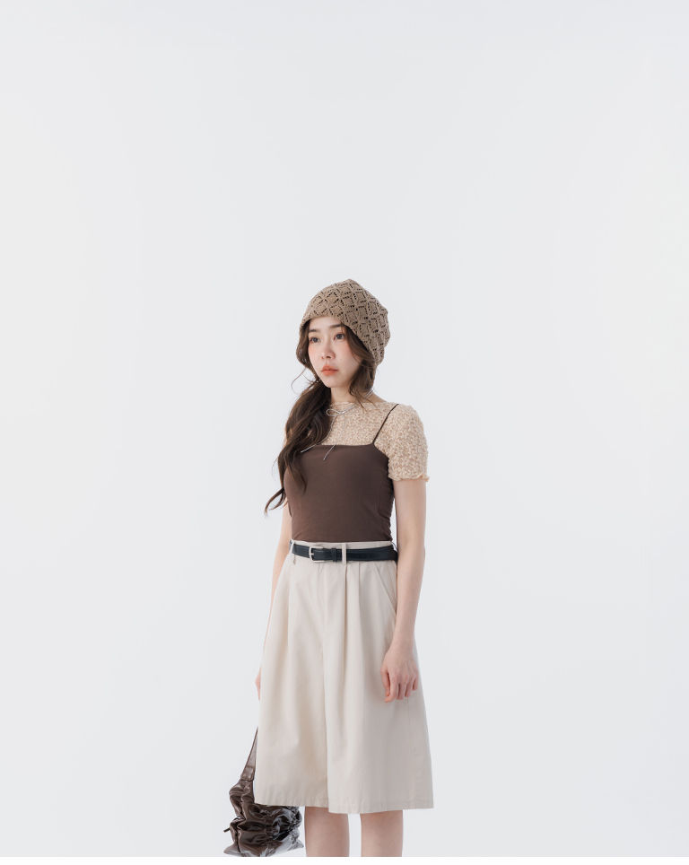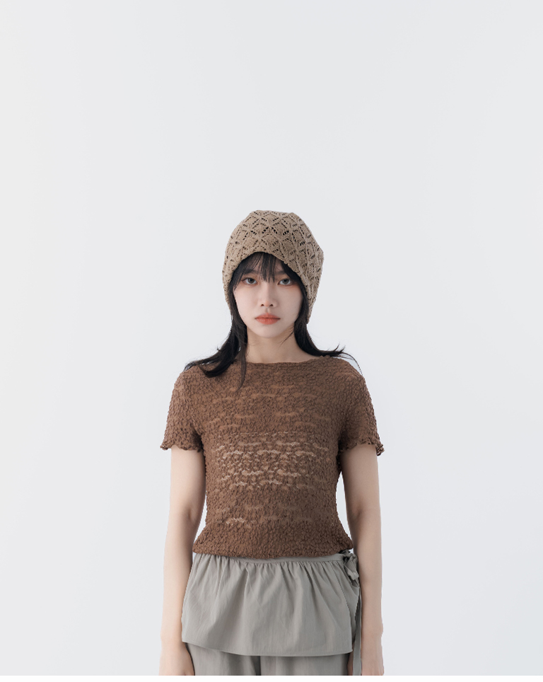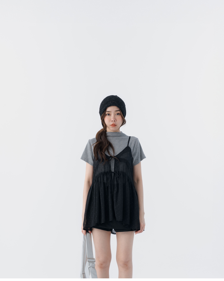 S~L身形實測!分尺寸皺皺木耳邊透膚高領長袖上衣