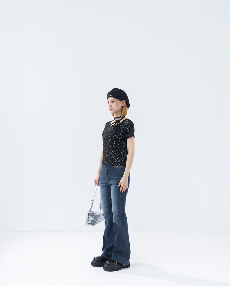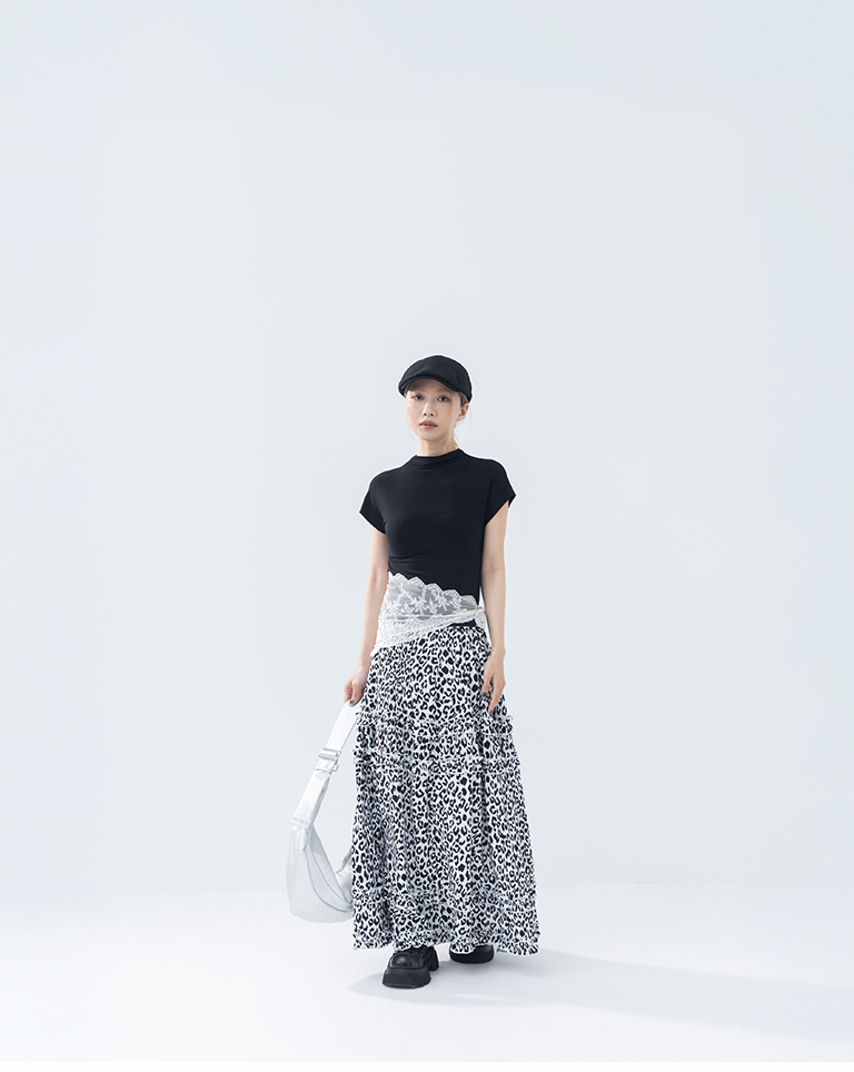 S~L身形實測!分尺寸皺皺木耳邊透膚高領長袖上衣