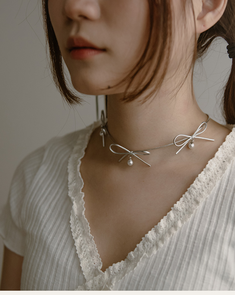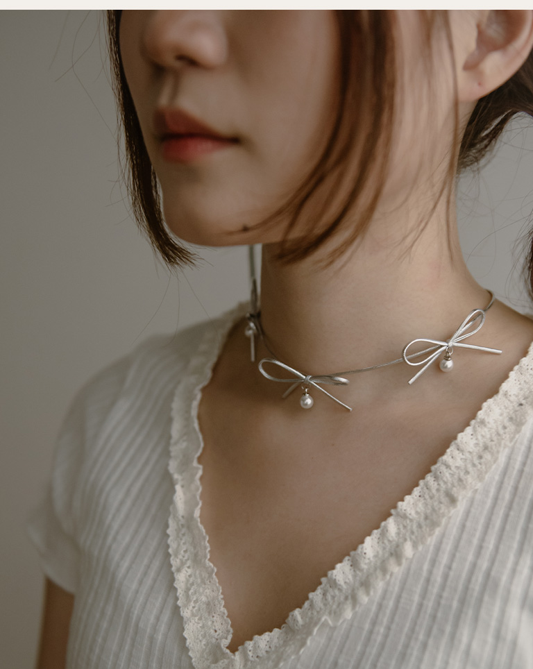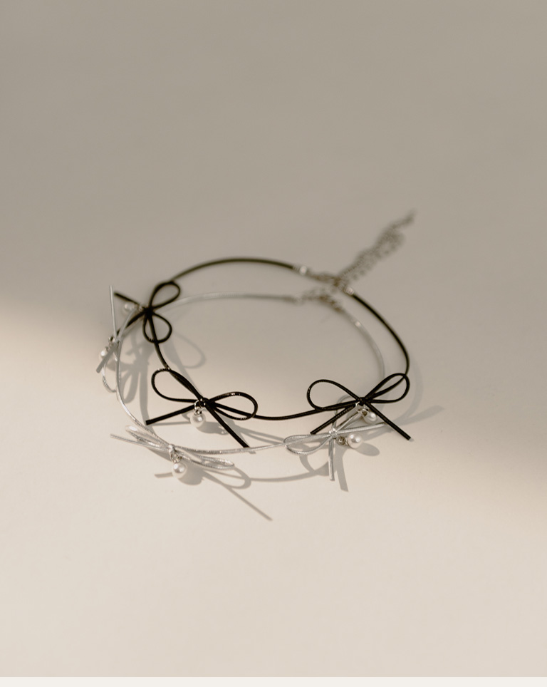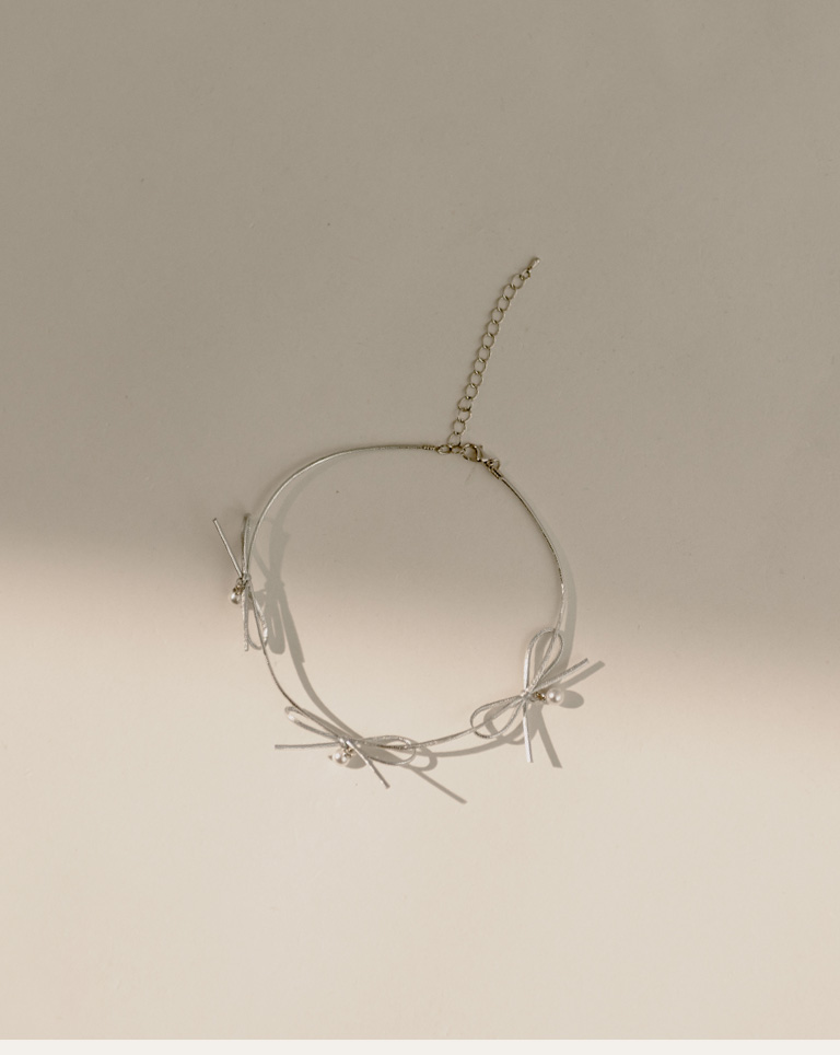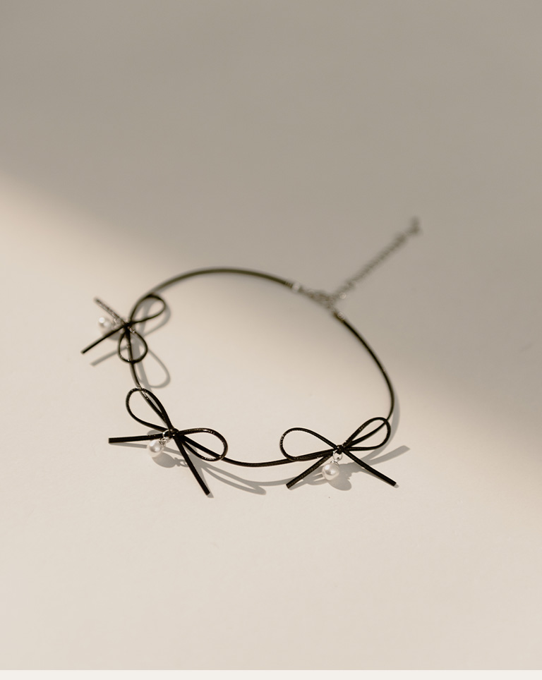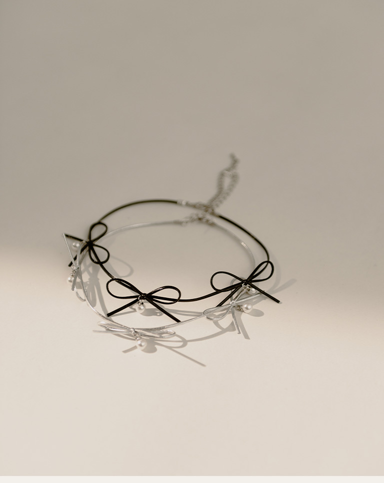 多蝴蝶結造型皮繩鎖骨鍊