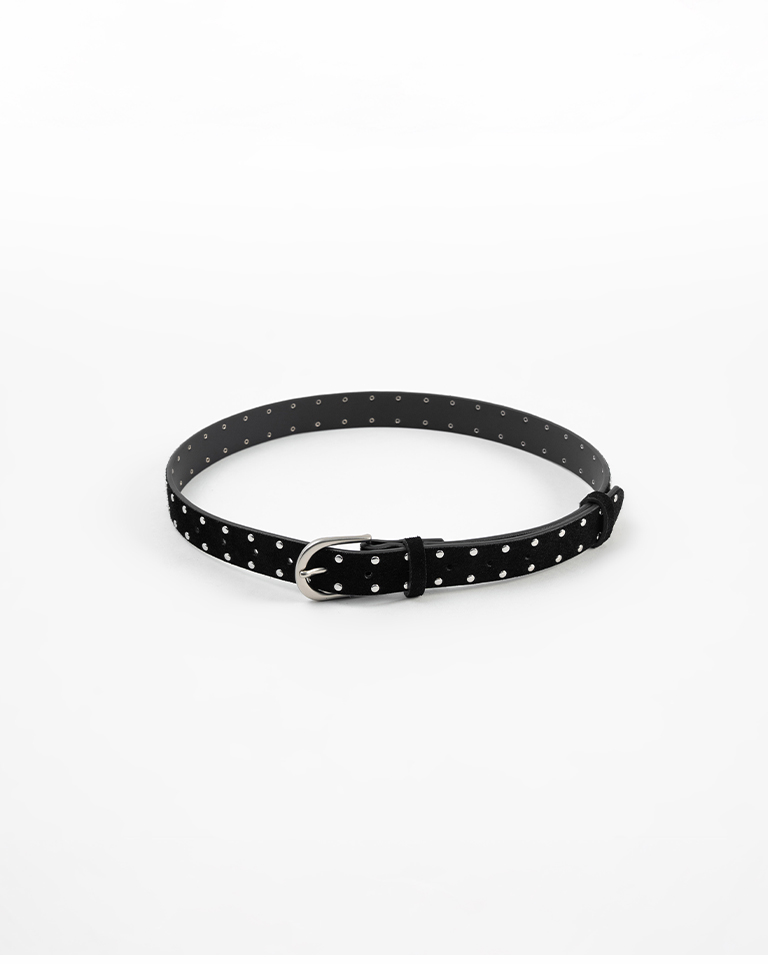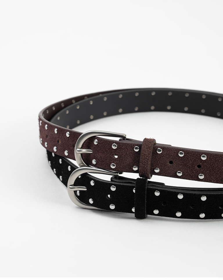 麂皮鉚釘設計真皮皮帶 兩色售