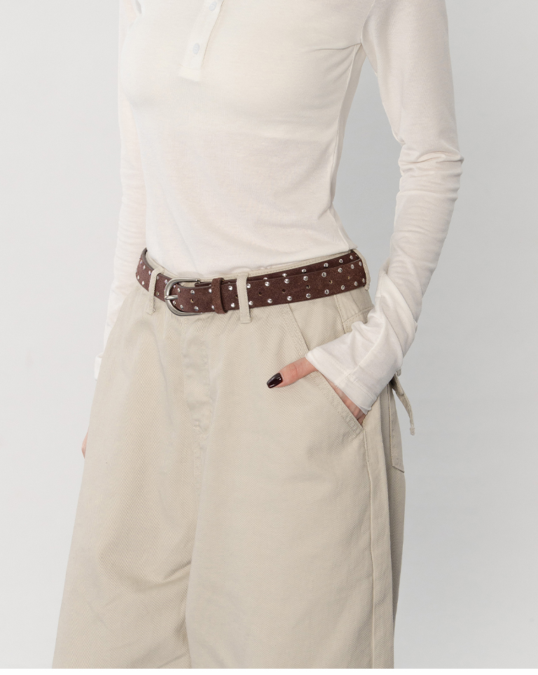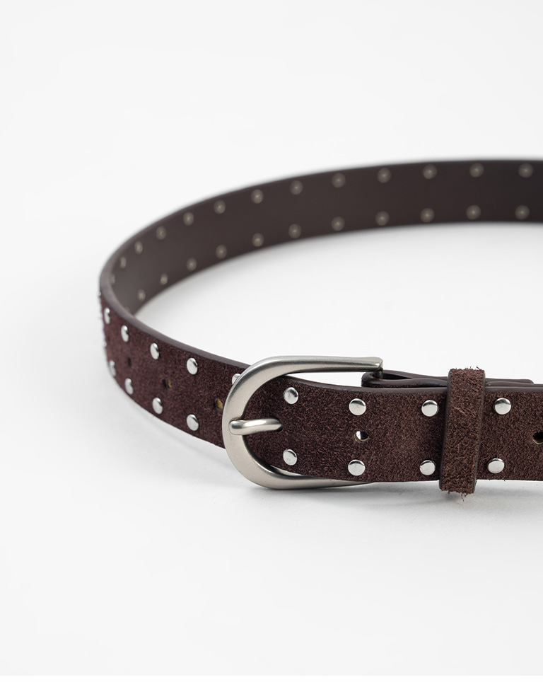 麂皮鉚釘設計真皮皮帶