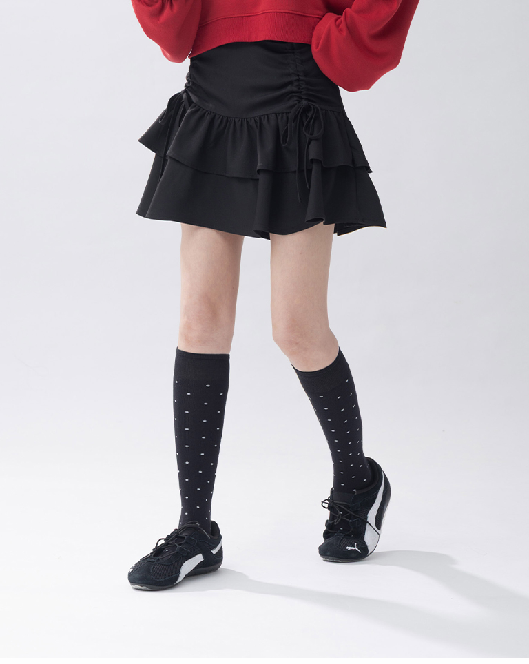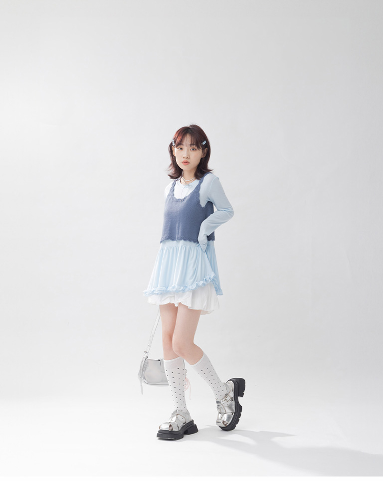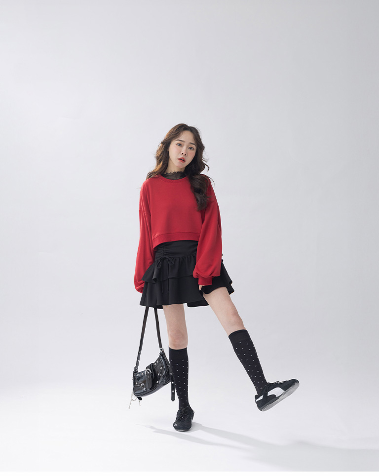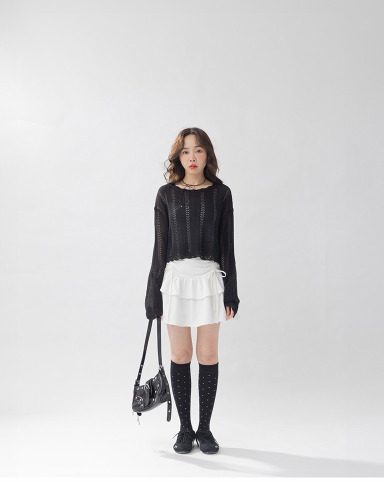 S~L身形實測!分尺寸皺皺木耳邊透膚高領長袖上衣