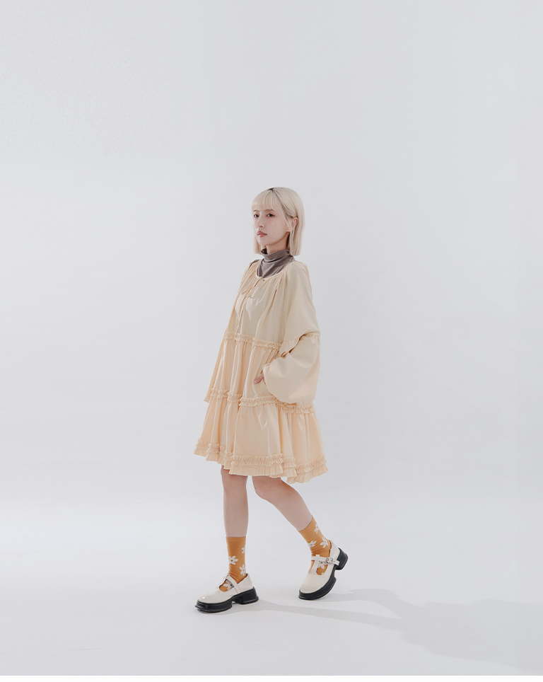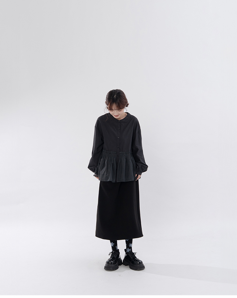 S~L身形實測!分尺寸皺皺木耳邊透膚高領長袖上衣