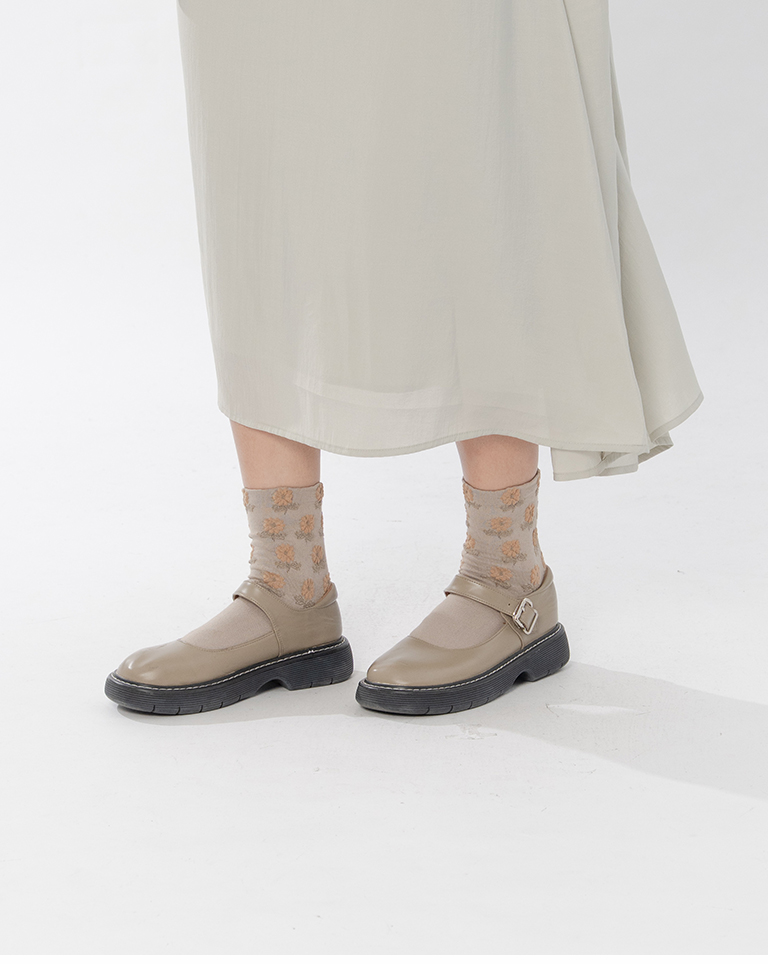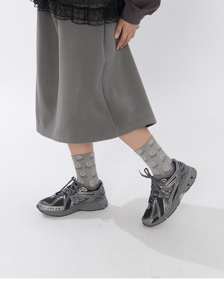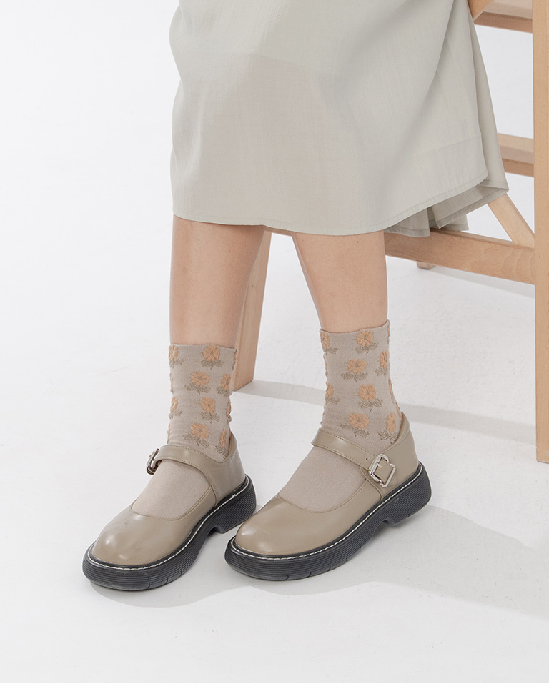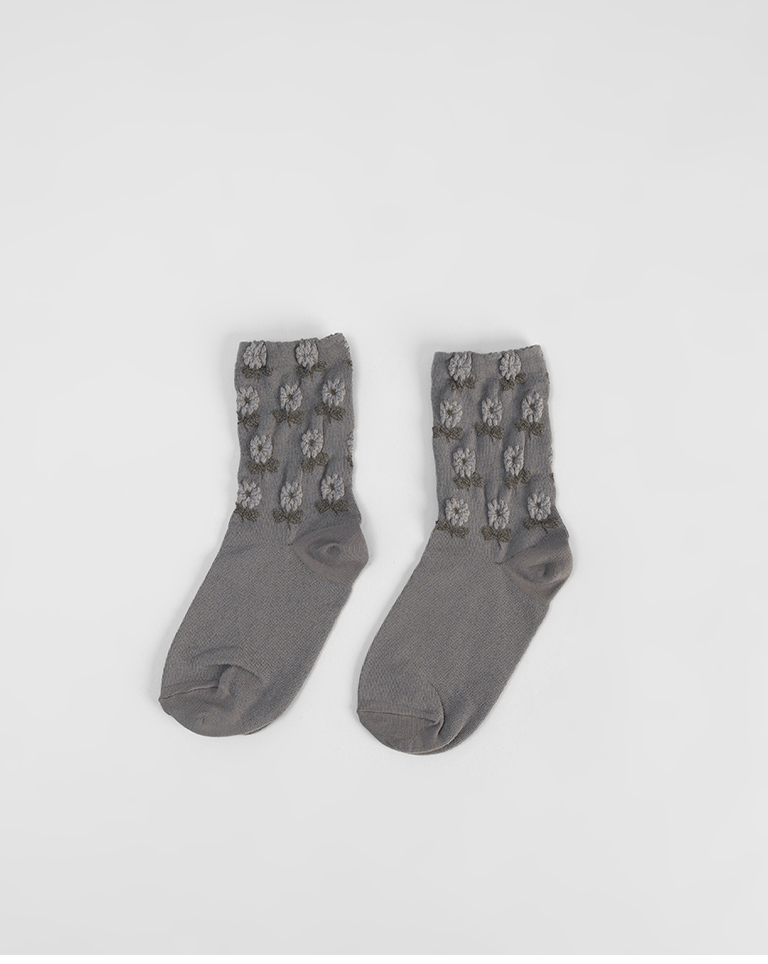 復古立體小花造型中筒襪 兩色售