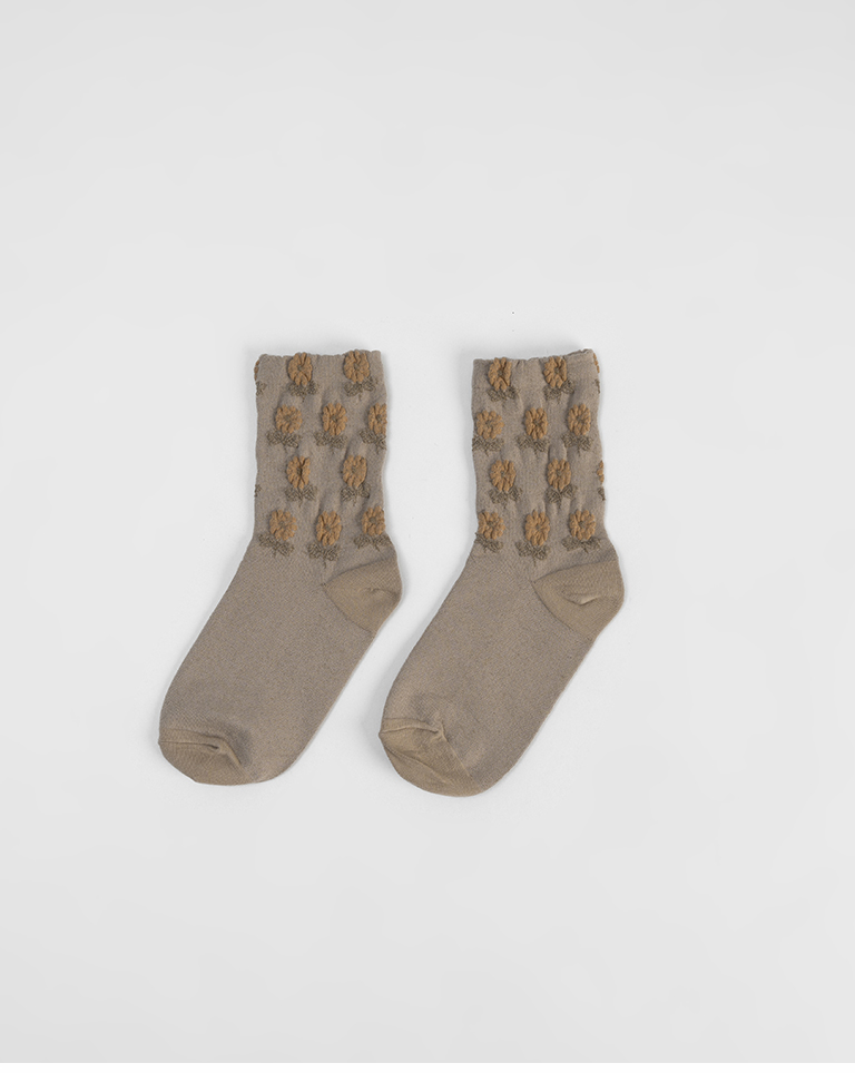 復古立體小花造型中筒襪