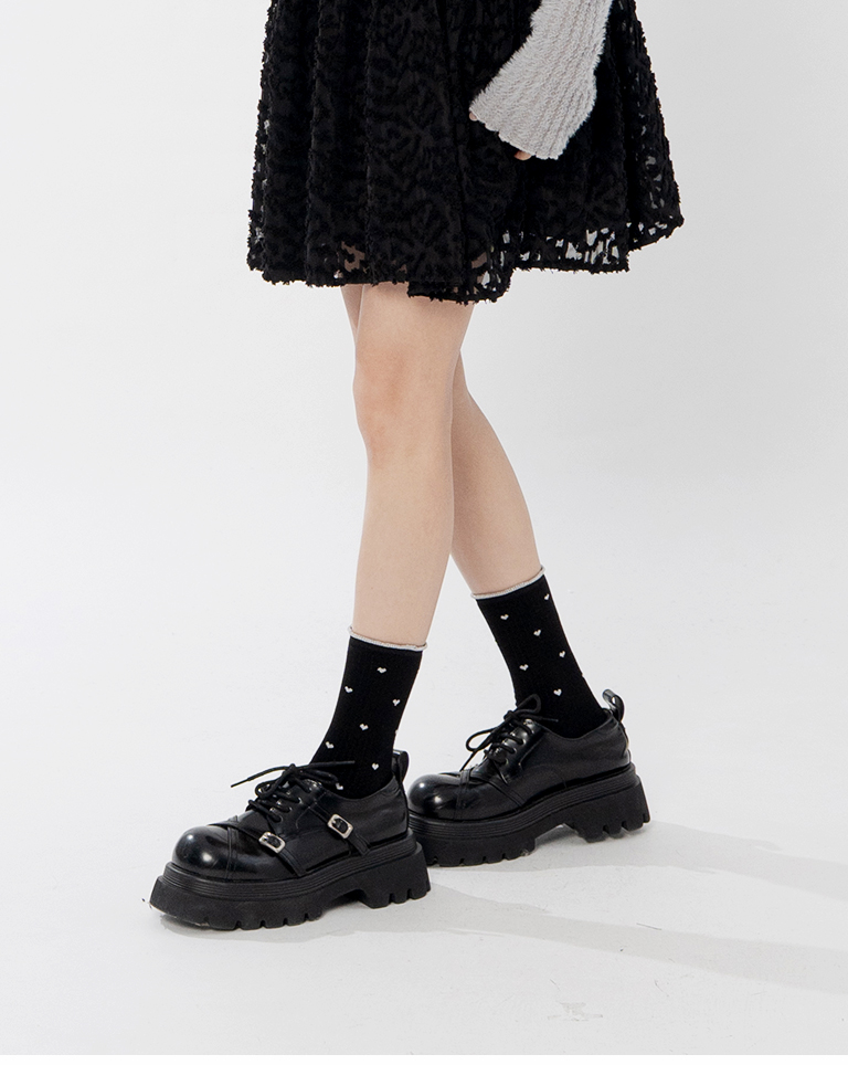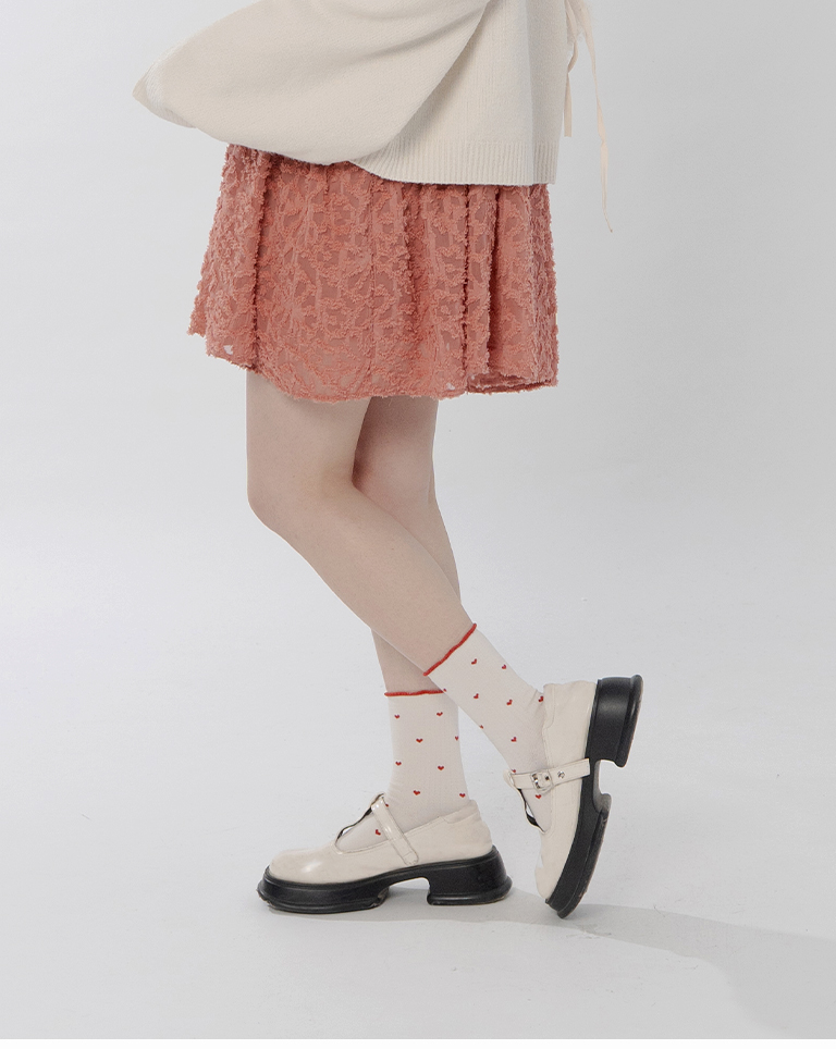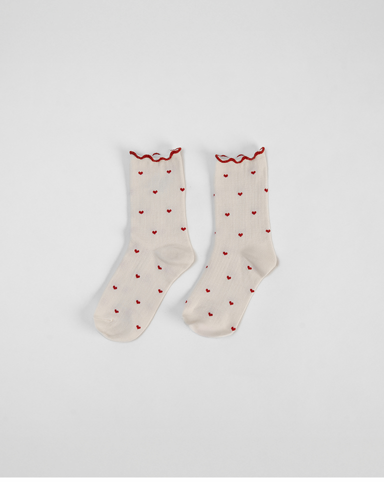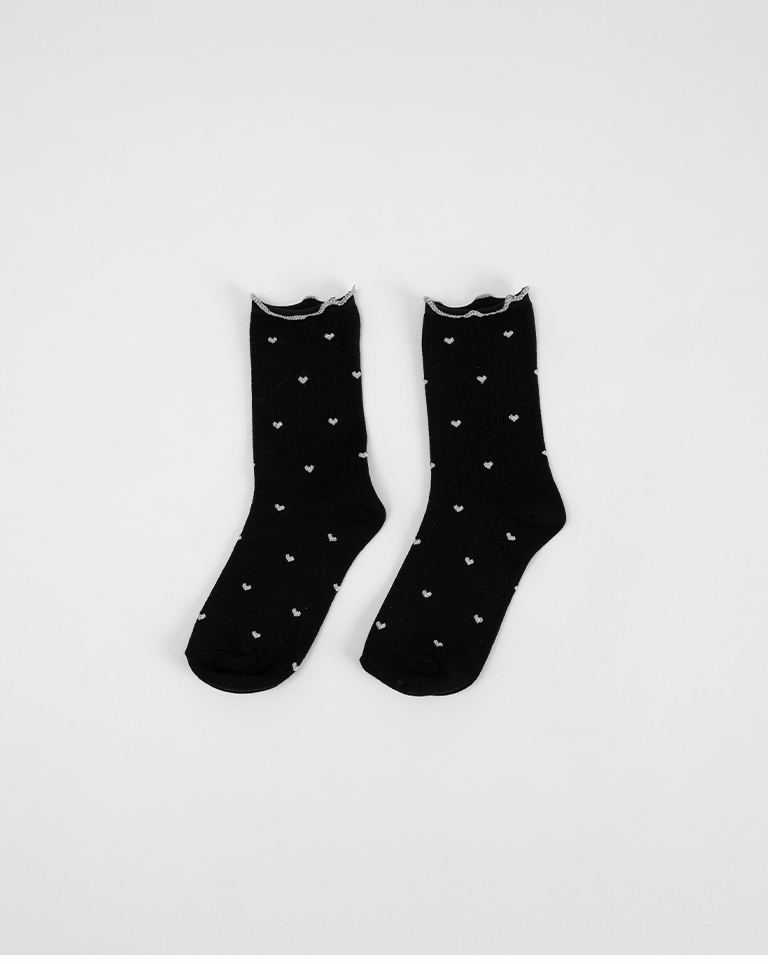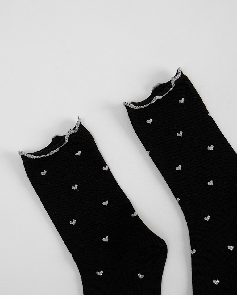 金蔥小愛心木耳邊造型中筒襪