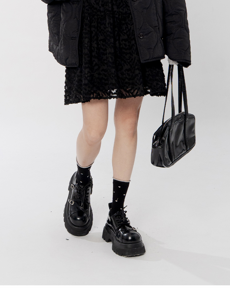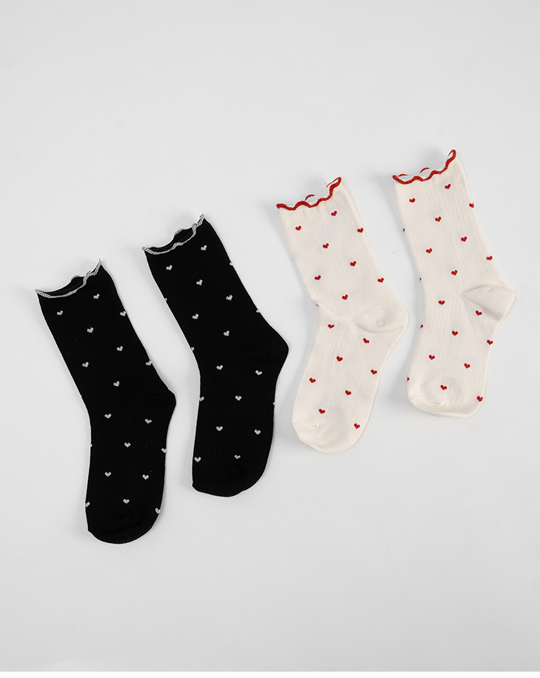 金蔥小愛心木耳邊造型中筒襪 兩色售