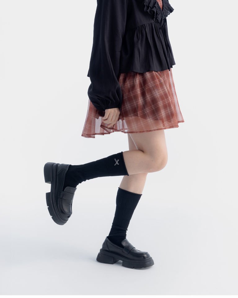 S~L身形實測!分尺寸皺皺木耳邊透膚高領長袖上衣