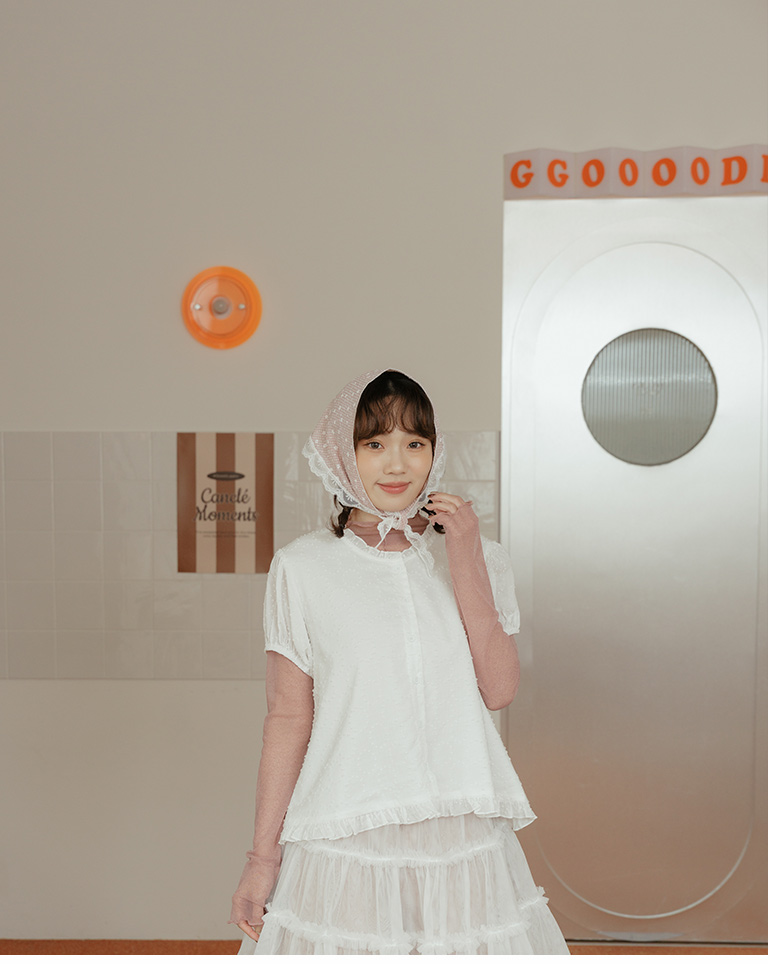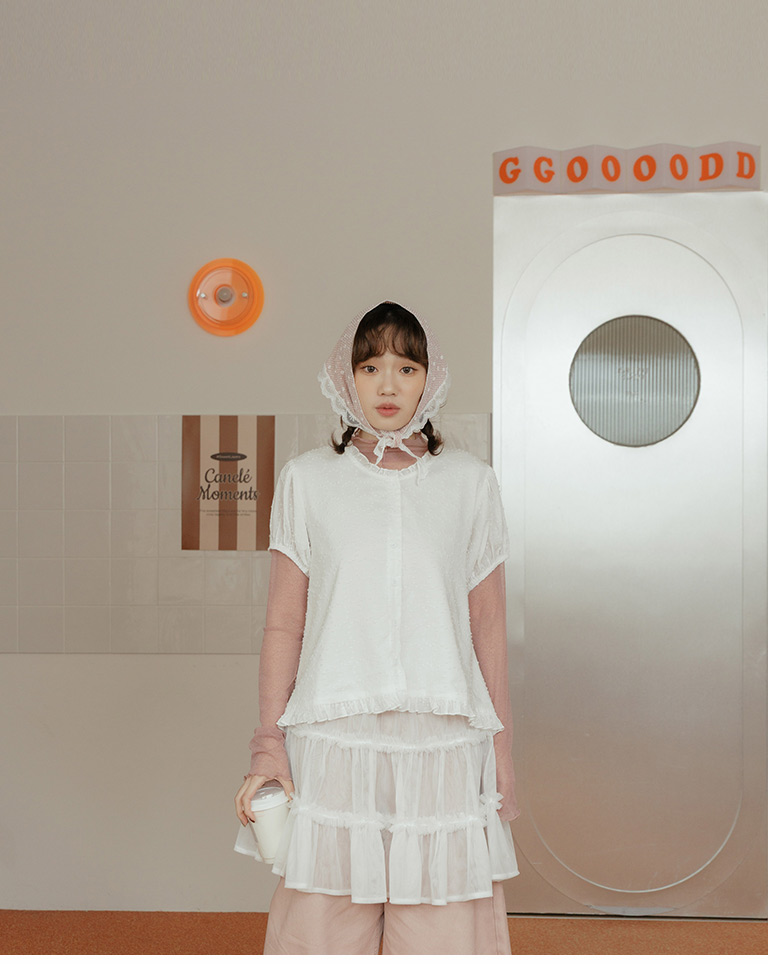 S~L身形實測!分尺寸皺皺木耳邊透膚高領長袖上衣