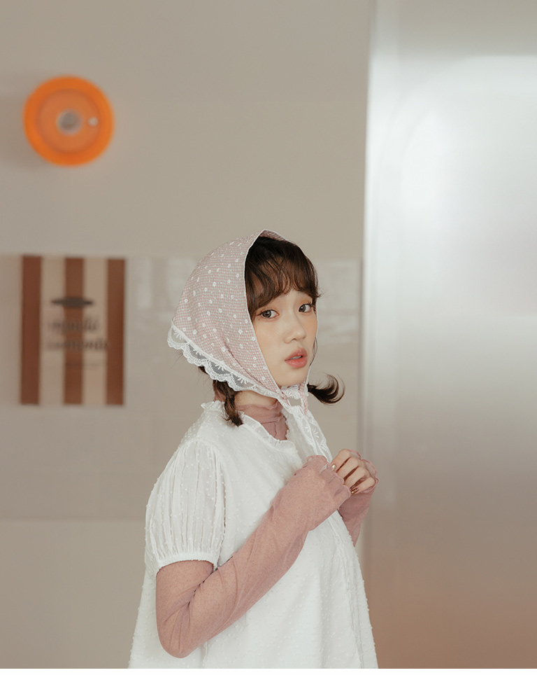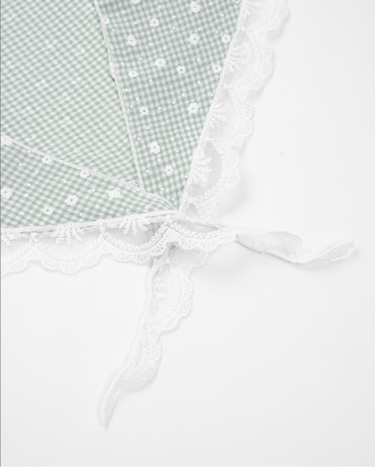 小花蕾絲格紋造型三角巾