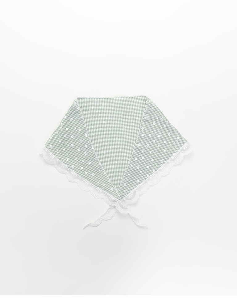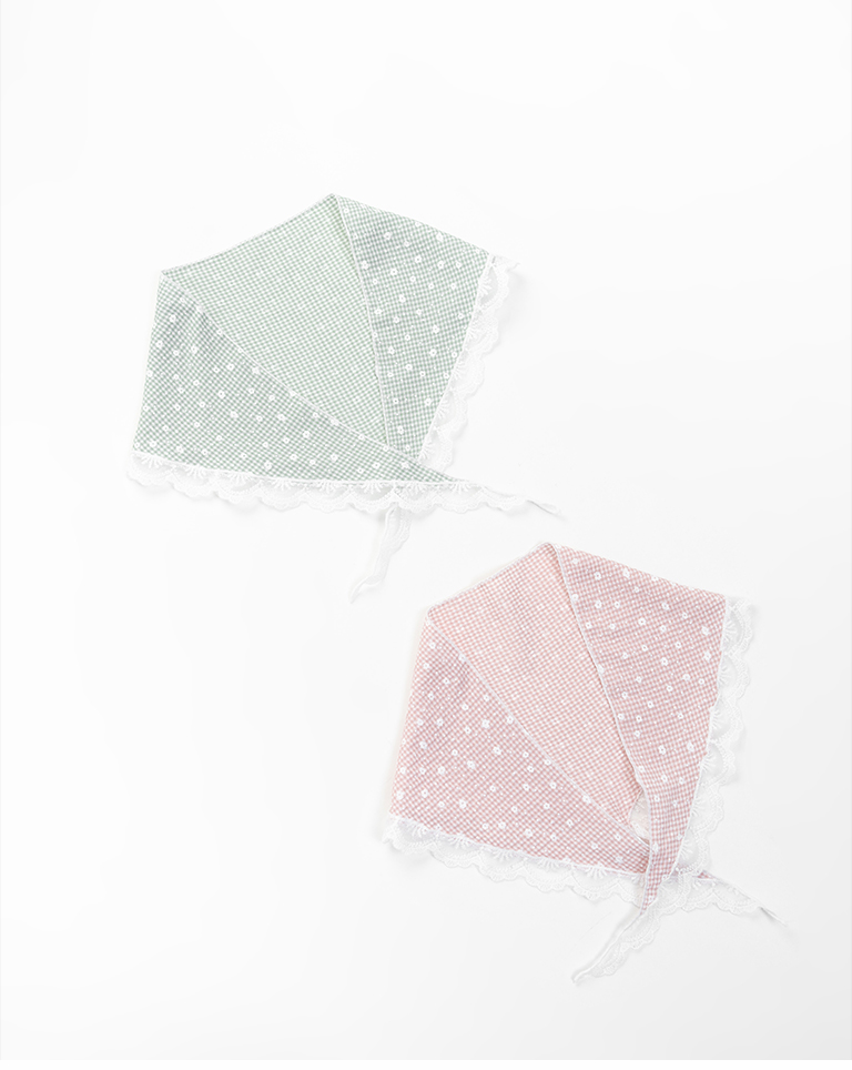 小花蕾絲格紋造型三角巾 兩色售