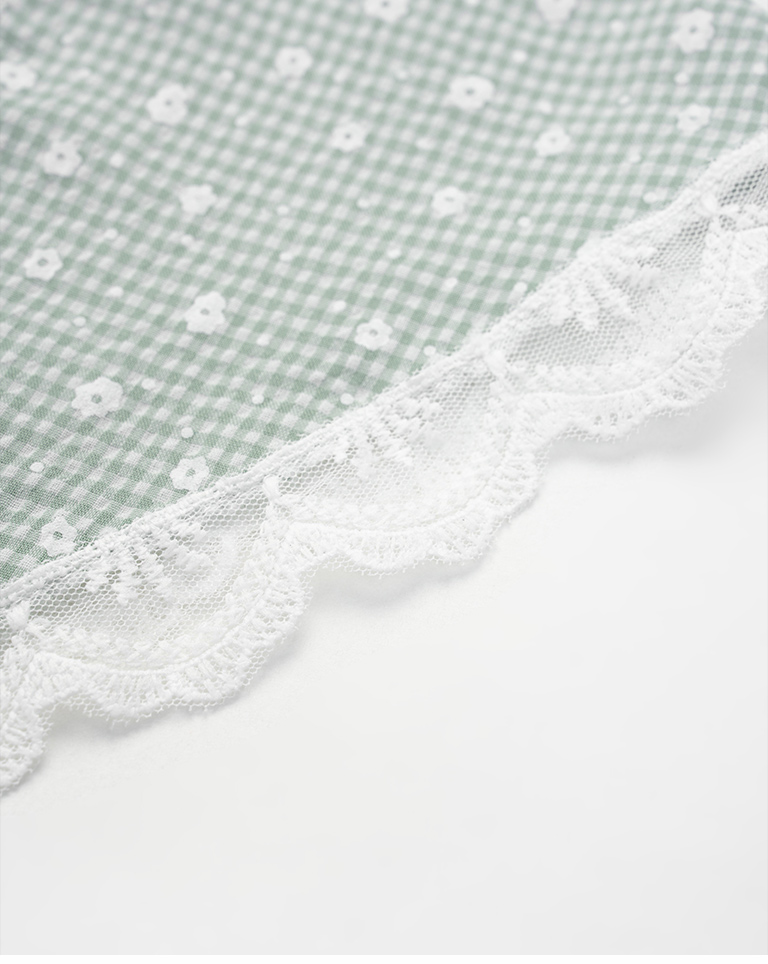 小花與格紋元素結合 搭配蕾絲邊增添精緻甜美感