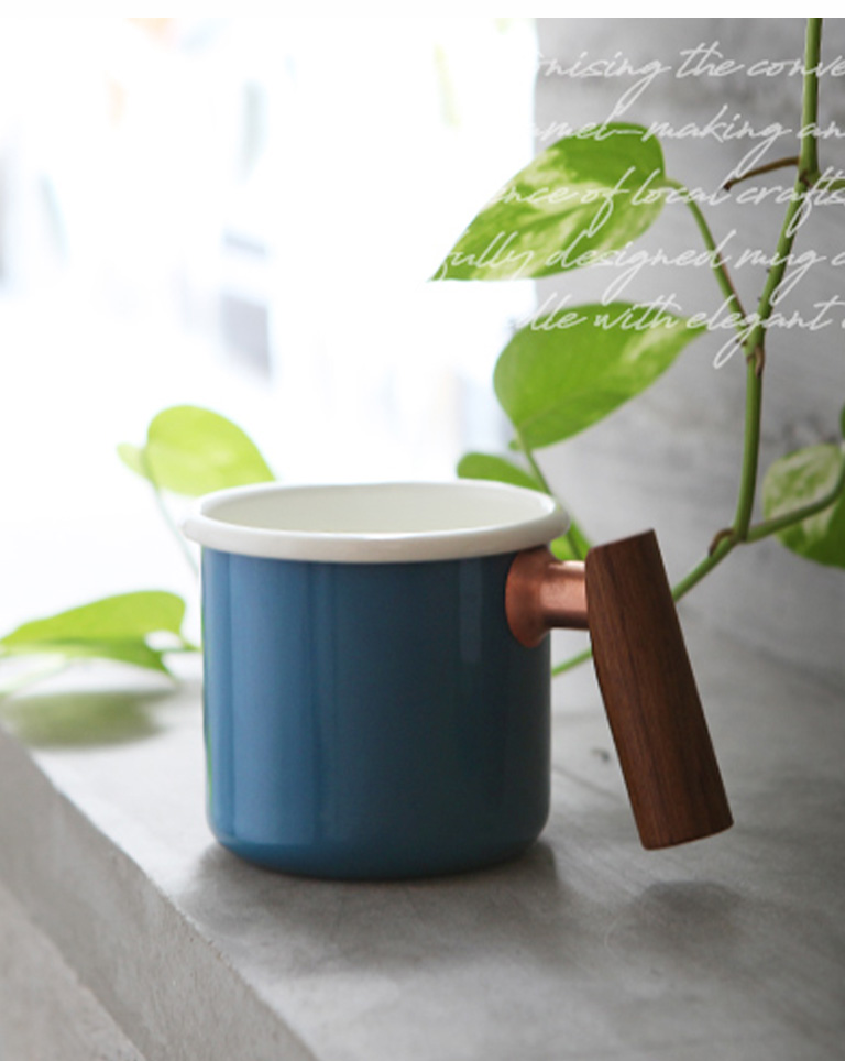 雙色木柄琺瑯杯400ml 素面款 共七色售