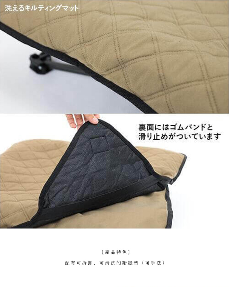 - 配有可拆卸、可清洗的絎縫墊(可手洗)。